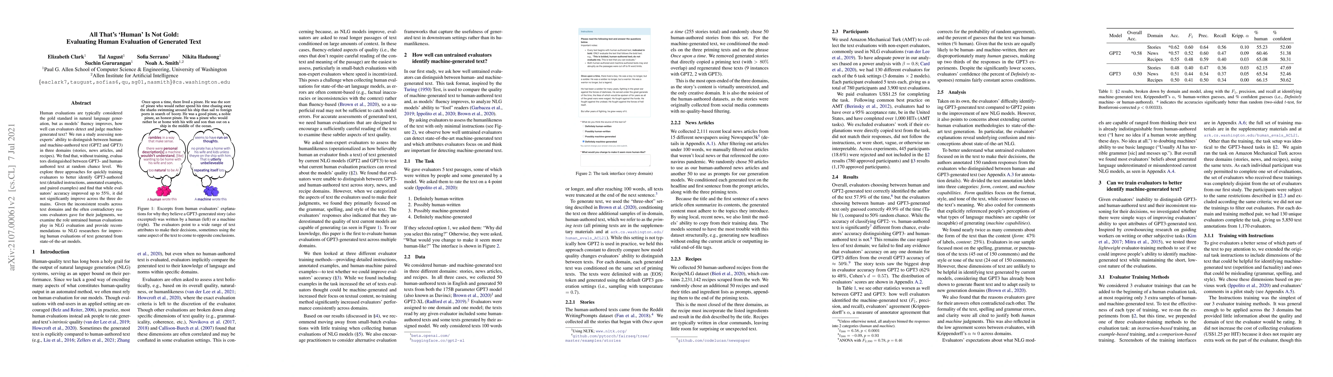 Human evaluations are typically considered the gold standard in natural language generation, but as models' fluency improves, how well can evaluators detect and judge machine-generated text? We run a study assessing non-experts' ability to distinguish between human- and machine-authored text (GPT2 and GPT3) in three domains (stories, news articles, and recipes). We find that, without training, evaluators distinguished between GPT3- and human-authored text at random chance level. We explore three approaches for quickly training evaluators to better identify GPT3-authored text (detailed instructions, annotated examples, and paired examples) and find that while evaluators' accuracy improved up to 55%, it did not significantly improve across the three domains. Given the inconsistent results across text domains and the often contradictory reasons evaluators gave for their judgments, we examine the role untrained human evaluations play in NLG evaluation and provide recommendations to NLG researchers for improving human evaluations of text generated from state-of-the-art models.