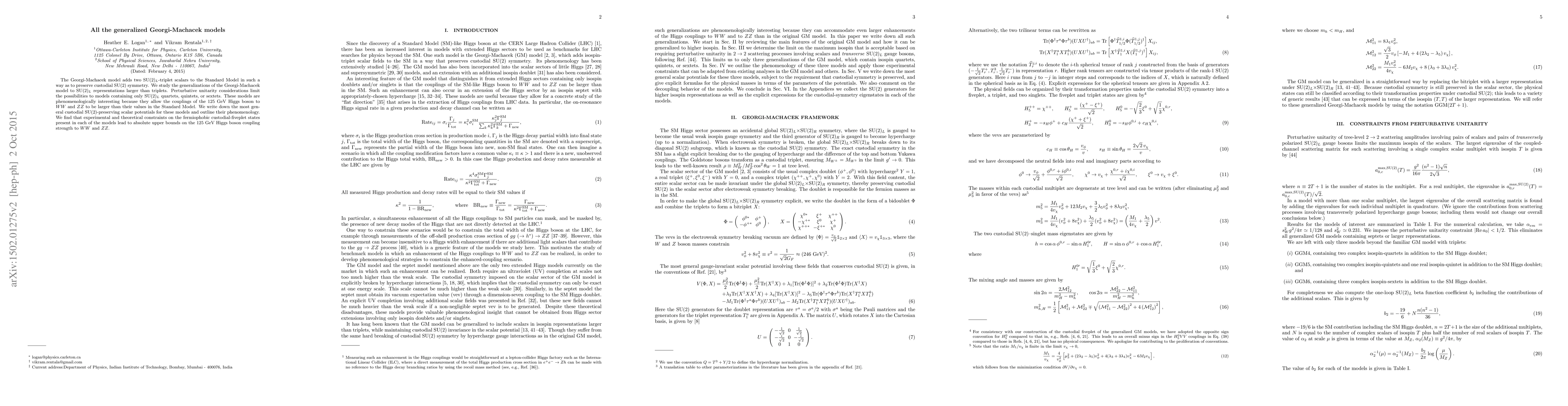 This paper explores generalized Georgi-Machacek models that extend beyond SU(2)_L triplets to quartets, quintets, and sextets, preserving custodial symmetry. It outlines the phenomenological implications and finds that fermiophobic states impose upper bounds on the Higgs boson's coupling to WW and ZZ.