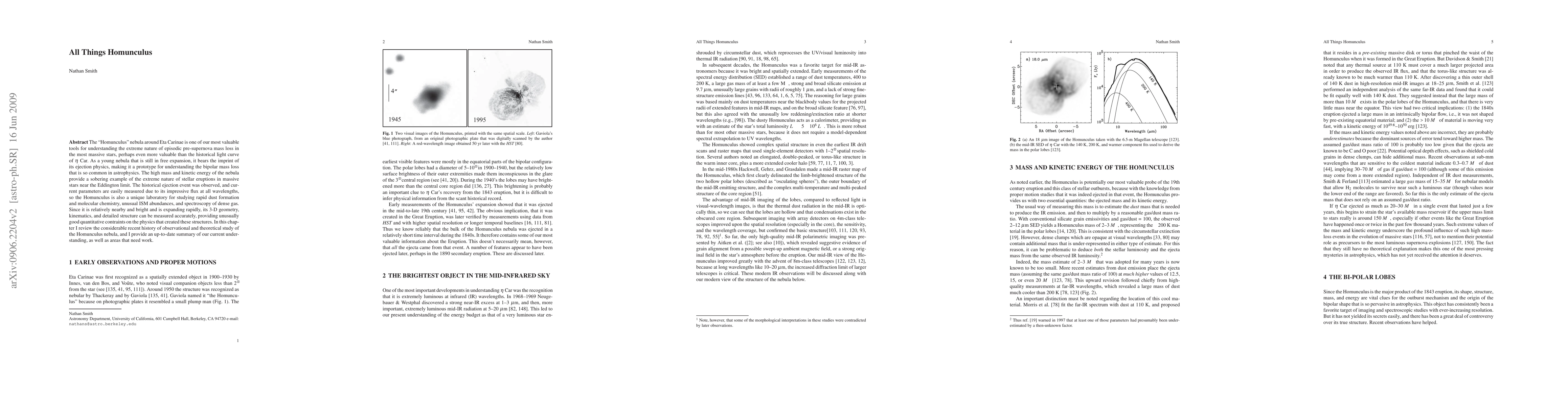 The ``Homunculus'' nebula around Eta Carinae is one of our most valuable tools for understanding the extreme nature of episodic pre-supernova mass loss in the most massive stars, perhaps even more valuable than the historical light curve of eta Car. As a young nebula that is still in free expansion, it bears the imprint of its ejection physics, making it a prototype for understanding the bipolar mass loss that is so common in astrophysics. The high mass and kinetic energy of the nebula provide a sobering example of the extreme nature of stellar eruptions in massive stars near the Eddington limit. The historical ejection event was observed, and current parameters are easily measured due to its impressive flux at all wavelengths, so the Homunculus is also a unique laboratory for studying rapid dust formation and molecular chemistry, unusual ISM abundances, and spectroscopy of dense gas. Since it is relatively nearby and bright and is expanding rapidly, its 3-D geometry, kinematics, and detailed structure can be measured accurately, providing unusually good quantitative constraints on the physics that created these structures. In this chapter I review the considerable recent history of observational and theoretical study of the Homunculus nebula, and I provide an up-to-date summary of our current understanding, as well as areas that need work.