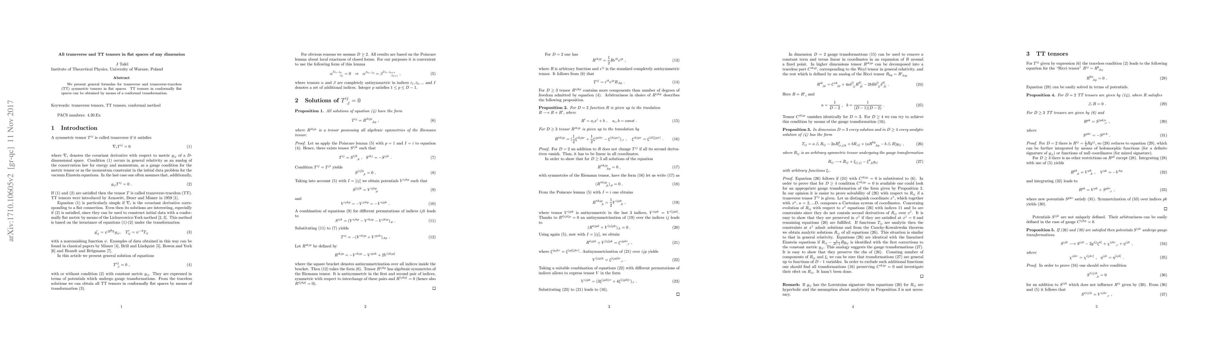 Researchers developed formulas for transverse and transverse-traceless tensors in flat spaces of any dimension, with applications in conformal transformations.