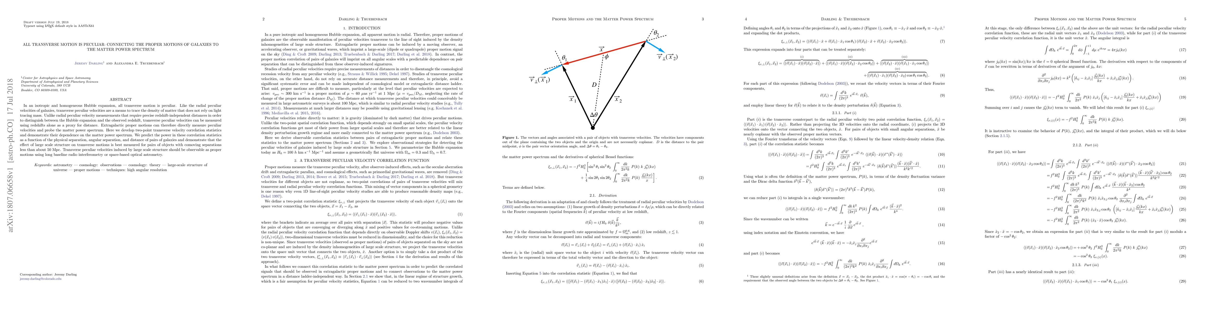 This paper explores how transverse peculiar velocities of galaxies, measurable via extragalactic proper motions, can trace the matter power spectrum independent of light-based mass measurements. It develops two-point transverse velocity correlation statistics and predicts their dependence on the matter power spectrum, suggesting that these effects are most observable for galaxy pairs with comoving separations under 50 Mpc.