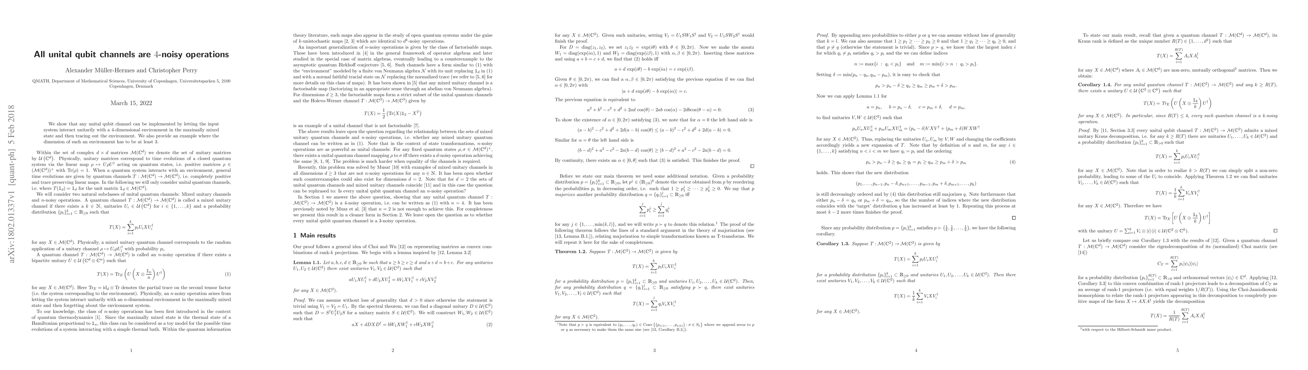 We show that any unital qubit channel can be implemented by letting the input system interact unitarily with a $4$-dimensional environment in the maximally mixed state and then tracing out the environment. We also provide an example where the dimension of such an environment has to be at least $3$.
