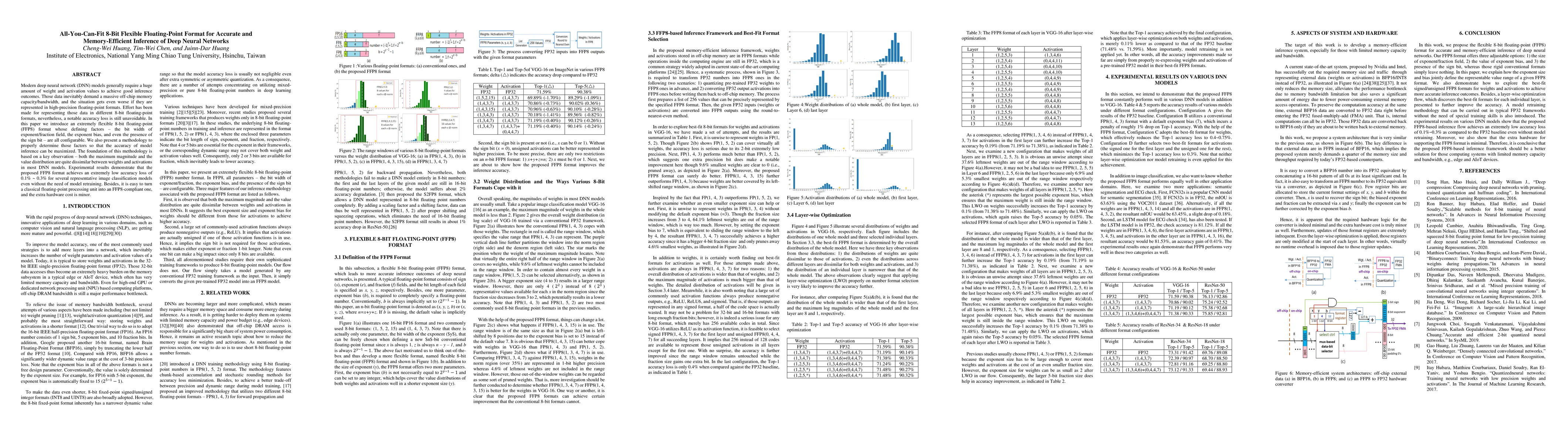 This paper proposes an adaptable 8-bit flexible floating-point (FFP8) format to balance accuracy and memory efficiency in deep neural network inference, achieving minimal accuracy loss of $0.1\%\sim 0.3\%$ without retraining, while requiring minimal additional hardware cost.