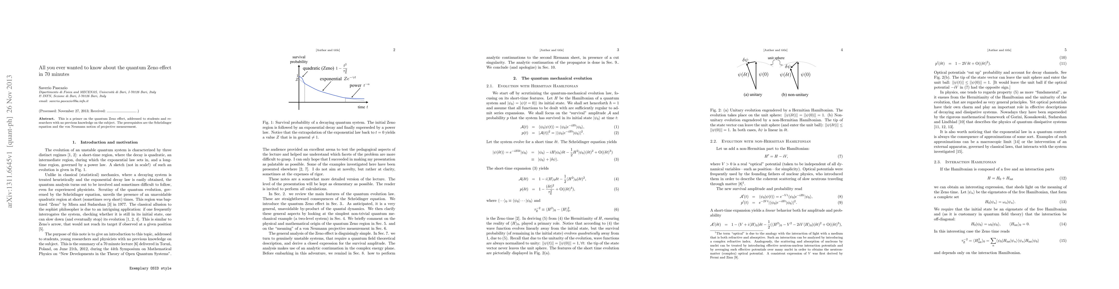 This is a primer on the quantum Zeno effect, addressed to students and researchers with no previous knowledge on the subject. The prerequisites are the Schr\"odinger equation and the von Neumann notion of projective measurement.