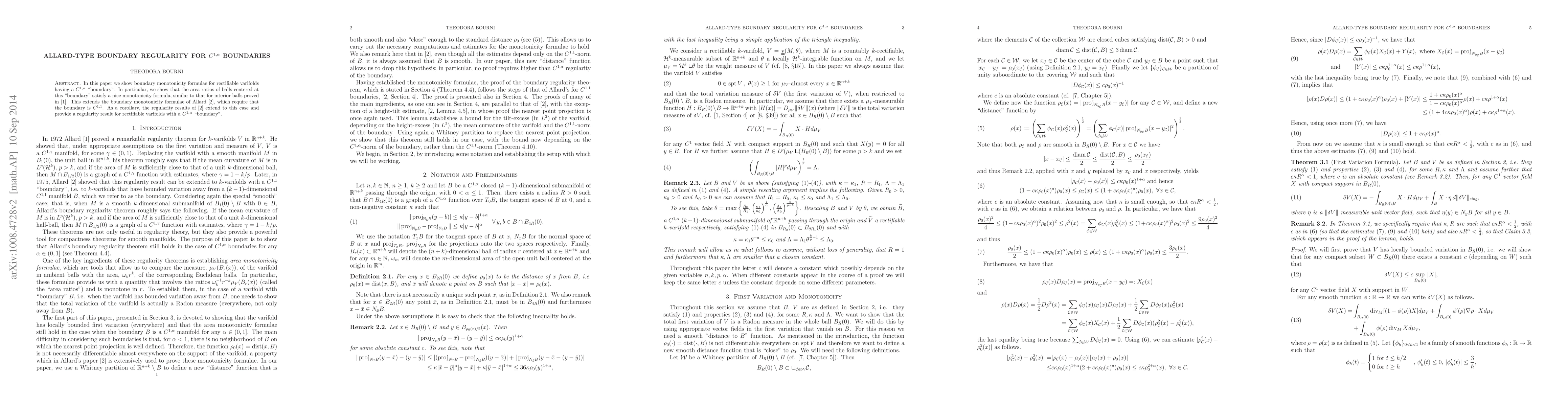 This paper extends Allard's boundary regularity results to rectifiable varifolds with $C^{1,\alpha}$ boundaries, proving boundary monotonicity formulae and showing that area ratios of boundary-centered balls satisfy a monotonicity formula similar to that for interior balls.