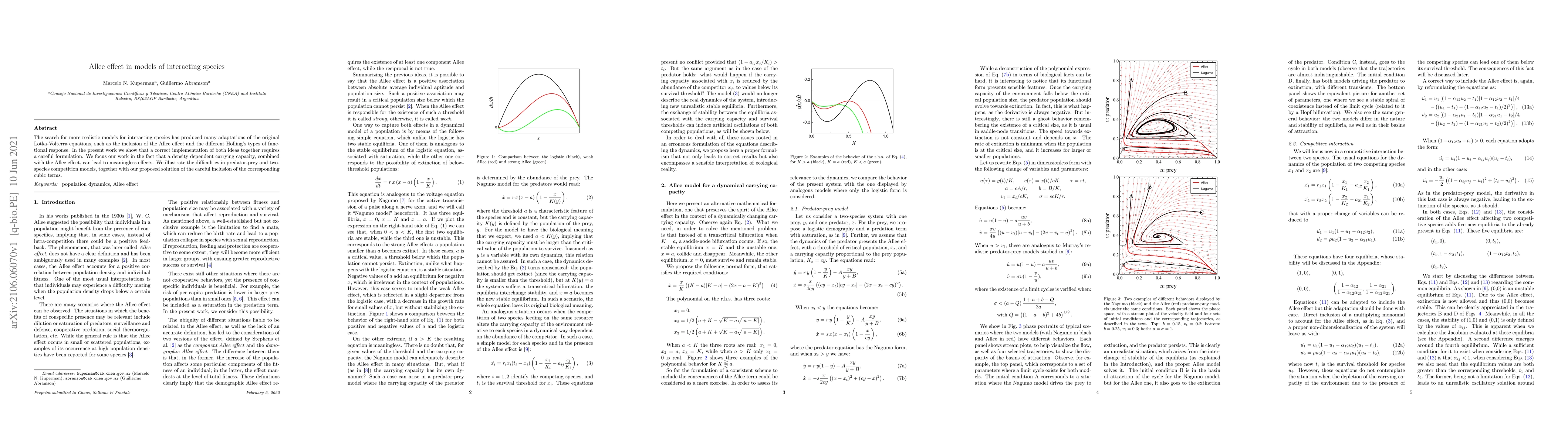 This paper examines the integration of the Allee effect and different Holling's functional responses in species interaction models, highlighting the complications that arise when a density-dependent carrying capacity is combined with the Allee effect. The authors propose a solution involving the inclusion of cubic terms to address these issues in predator-prey and competition models.