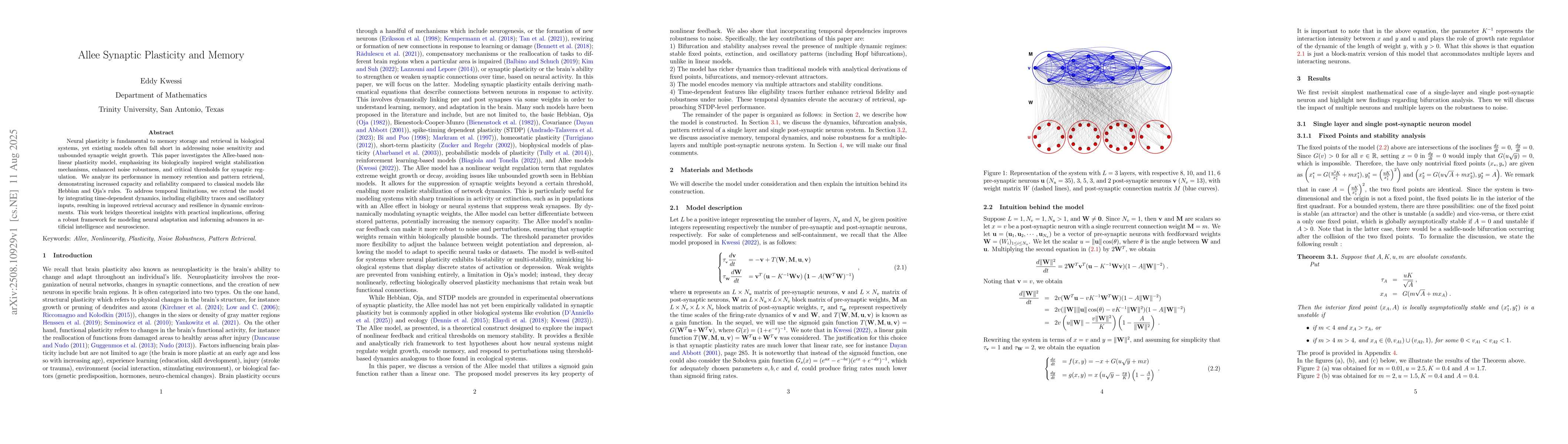 Neural plasticity is fundamental to memory storage and retrieval in biological systems, yet existing models often fall short in addressing noise sensitivity and unbounded synaptic weight growth. This paper investigates the Allee-based nonlinear plasticity model, emphasizing its biologically inspired weight stabilization mechanisms, enhanced noise robustness, and critical thresholds for synaptic regulation. We analyze its performance in memory retention and pattern retrieval, demonstrating increased capacity and reliability compared to classical models like Hebbian and Oja's rules. To address temporal limitations, we extend the model by integrating time-dependent dynamics, including eligibility traces and oscillatory inputs, resulting in improved retrieval accuracy and resilience in dynamic environments. This work bridges theoretical insights with practical implications, offering a robust framework for modeling neural adaptation and informing advances in artificial intelligence and neuroscience.