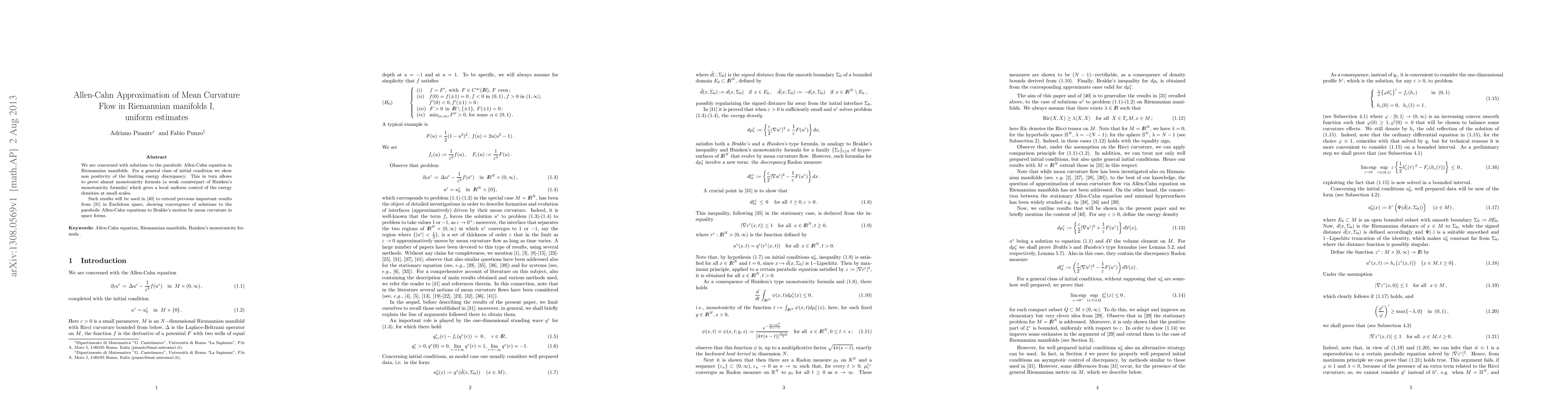 We are concerned with solutions to the parabolic Allen-Cahn equation in Riemannian manifolds. For a general class of initial condition we show non positivity of the limiting energy discrepancy. This in turn allows to prove almost monotonicity formula (a weak counterpart of Huisken's monotonicity formula) which gives a local uniform control of the energy densities at small scales. Such results will be used in [40] to extend previous important results from [31] in Euclidean space, showing convergence of solutions to the parabolic Allen-Cahn equations to Brakke's motion by mean curvature in space forms.