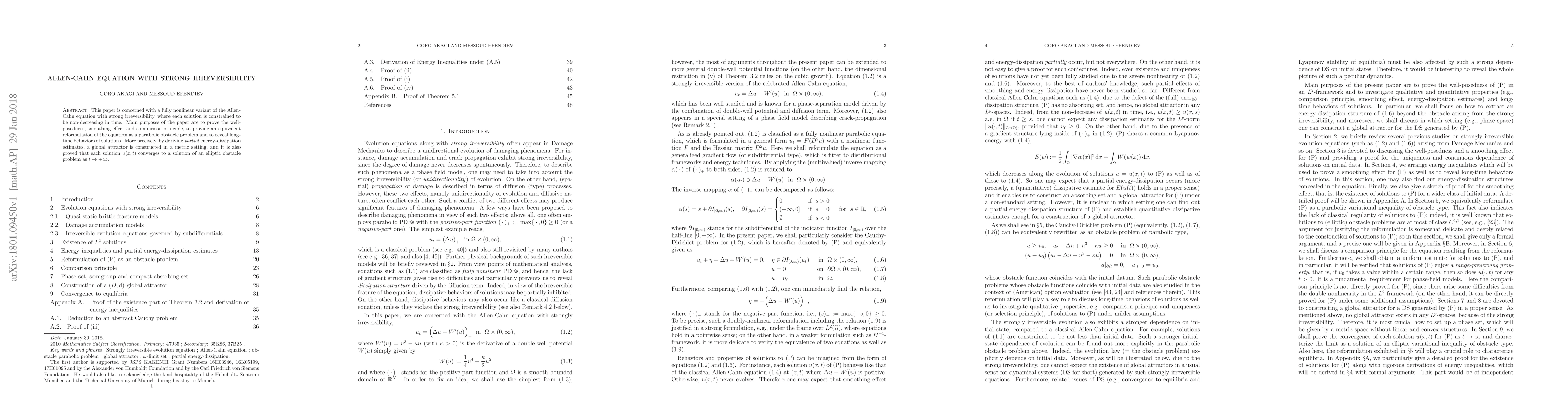 This paper investigates a nonlinear variant of the Allen-Cahn equation with strong irreversibility, proving well-posedness, smoothing effects, and long-time behaviors.