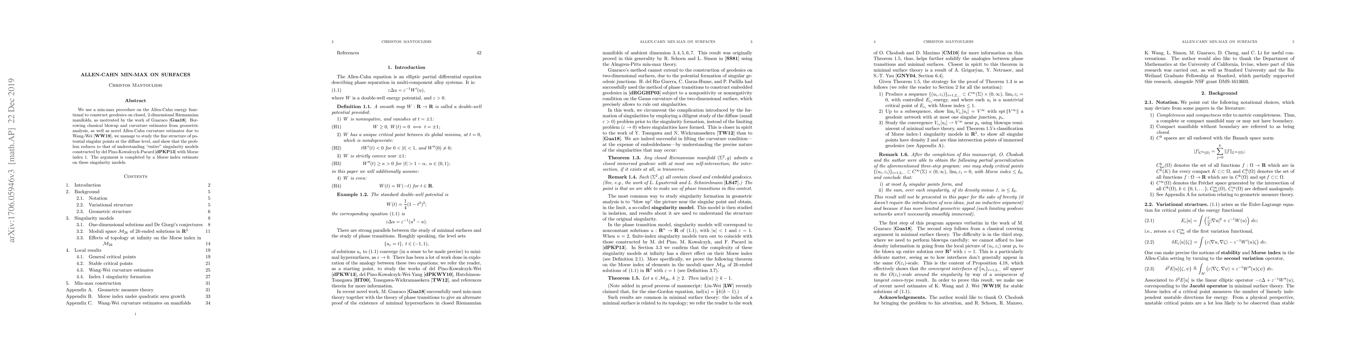 We use a min-max procedure on the Allen-Cahn energy functional to construct geodesics on closed, 2-dimensional Riemannian manifolds, as motivated by the work of Guaraco. Borrowing classical blowup and curvature estimates from geometric analysis, as well as novel Allen-Cahn curvature estimates due to Wang-Wei, we manage to study the fine structure of potential singular points at the diffuse level, and show that the problem reduces to that of understanding "entire" singularity models constructed by del Pino-Kowalczyk-Pacard with Morse index 1. The argument is completed by a Morse index estimate on these singularity models.