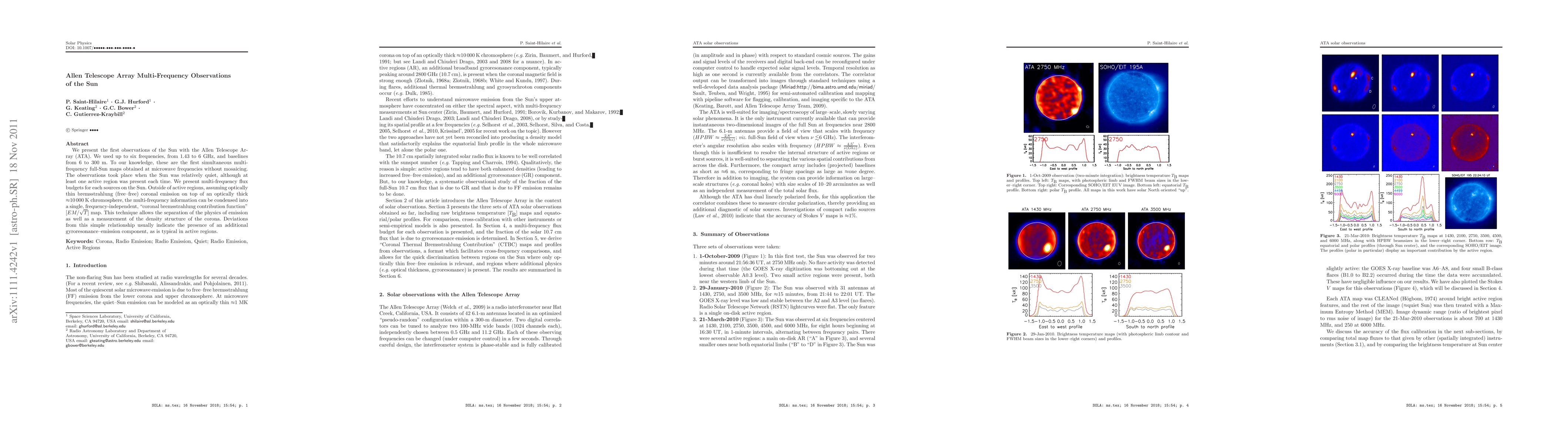 This paper reports the first multi-frequency observations of the Sun using the Allen Telescope Array, capturing full-Sun maps at microwave frequencies without mosaicing. The study reveals a coronal bremsstrahlung contribution function, enabling the separation of emission physics and measurement of coronal density structure, with deviations indicating gyroresonance-emission typical of active regions.