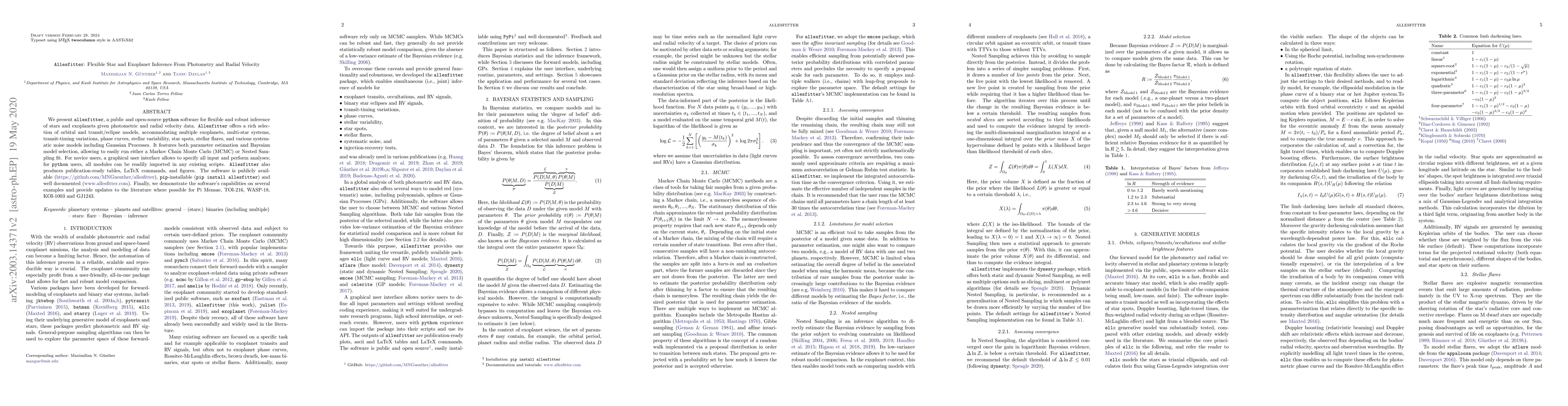 A new software called Allesfitter allows users to analyze photometric and radial velocity data to infer star and exoplanet properties with flexibility and robustness, offering a range of models and methods for parameter estimation and Bayesian model selection.