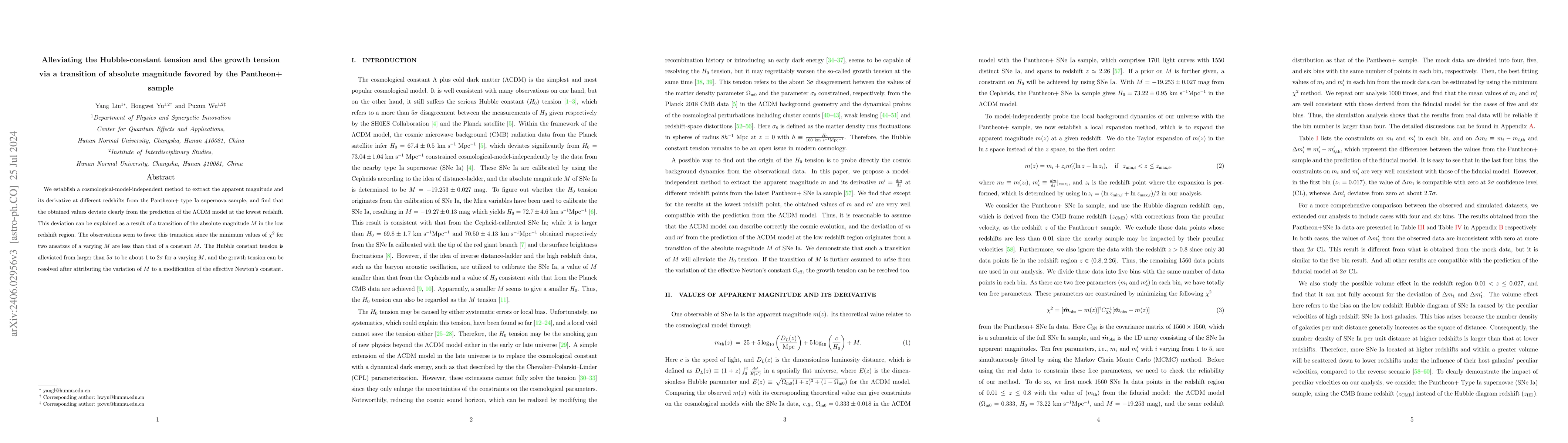 This research proposes a model-independent method to analyze the Pantheon+ type Ia supernova sample, revealing a transition in absolute magnitude at low redshifts that alleviates the Hubble constant tension and resolves growth tension by modifying the effective Newton's constant. The method finds that varying the absolute magnitude better fits the data than a constant magnitude, reducing the Hubble constant discrepancy to 1-2σ.
