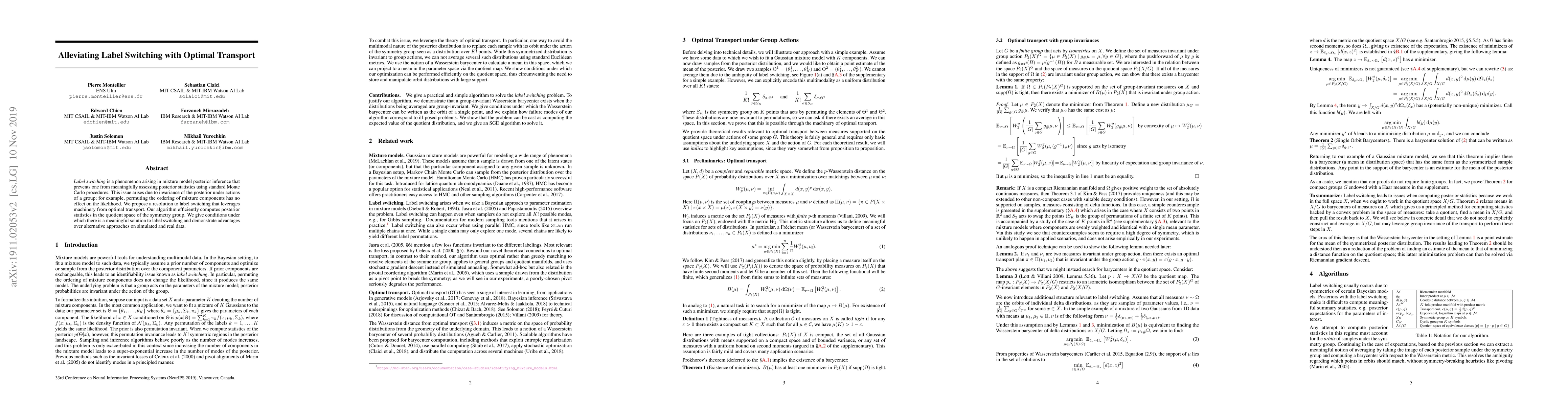 This paper addresses label switching in mixture model posterior inference, proposing a solution using optimal transport to compute posterior statistics in the quotient space of the symmetry group, demonstrating its effectiveness over alternative methods on both simulated and real data.