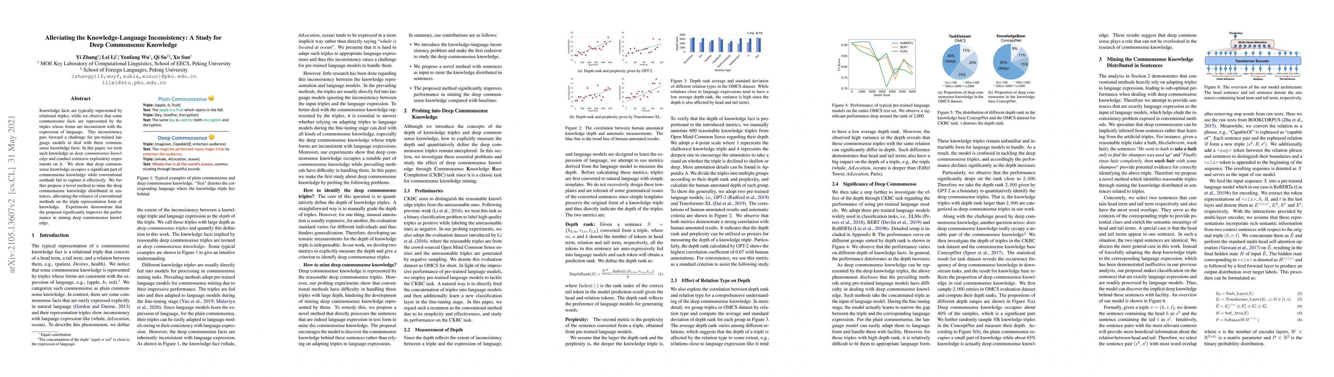 This paper investigates the inconsistency between knowledge-language representations, specifically focusing on deep commonsense knowledge, which is often misrepresented in relational triples. The study proposes a new method to extract this knowledge from sentences, improving the performance of knowledge mining over conventional triple-based approaches.