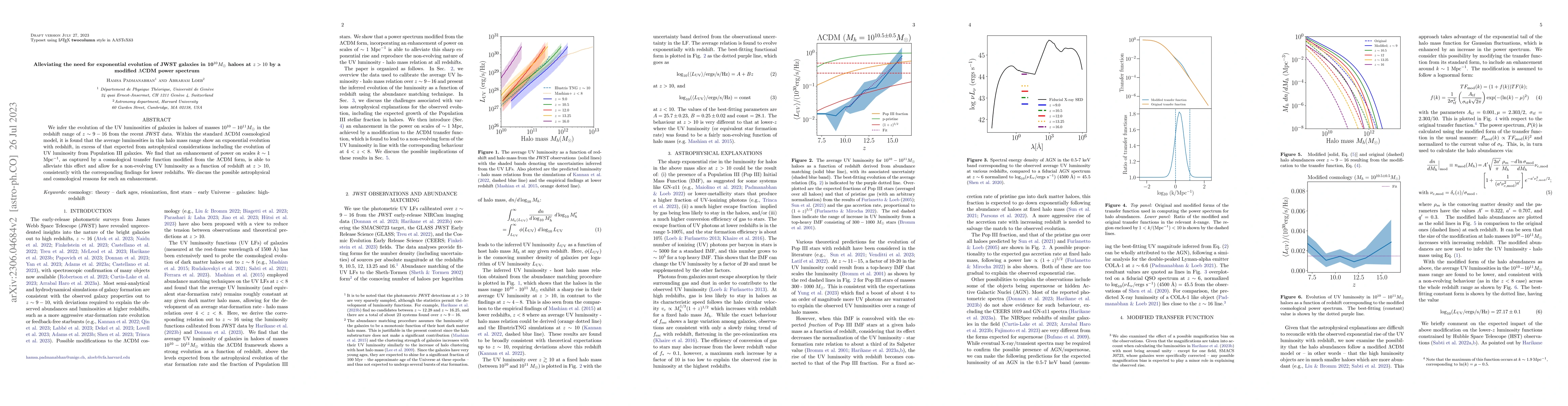 This paper explores the evolution of UV luminosities in galaxies within $10^{10} M_{\odot}$ haloes at high redshifts ($z > 10$), finding that standard $\Lambda$CDM models predict an excessive exponential luminosity increase. A modified power spectrum enhances power on scales of $k \sim 1$ Mpc$^{-1}$ to reconcile these findings with observations, suggesting a non-evolving UV luminosity at $z > 10$.