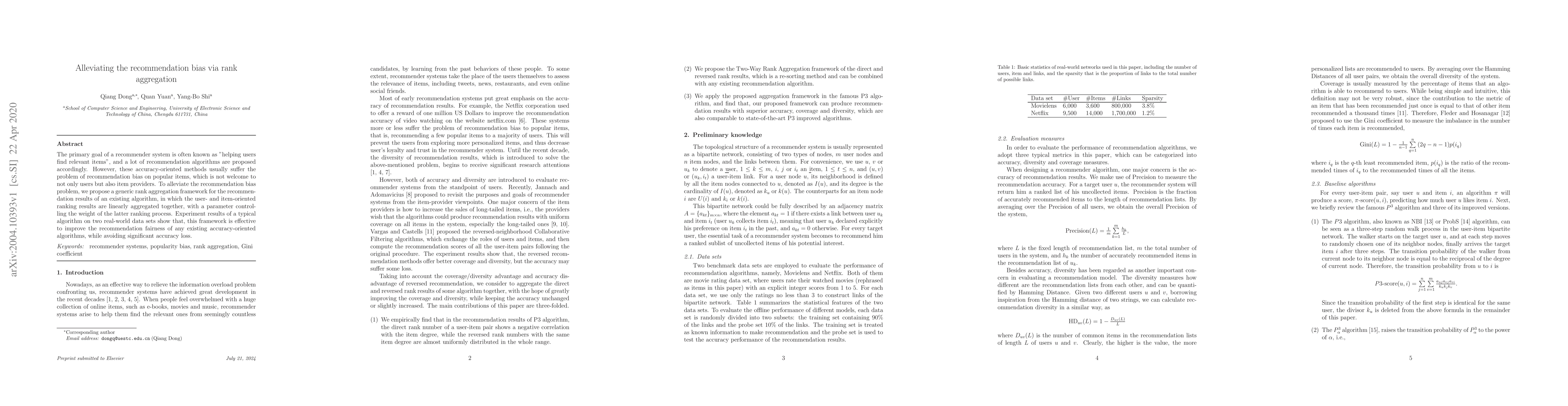 A new framework reduces recommendation bias by aggregating user and item rankings, improving fairness without sacrificing accuracy, according to experimental results on two real-world datasets.