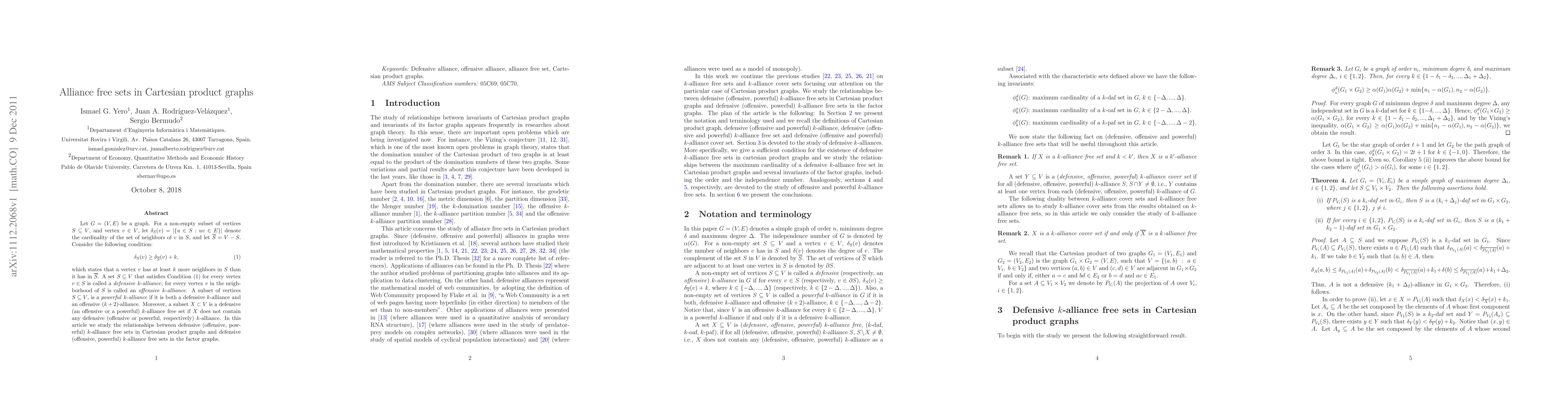 Let $G=(V,E)$ be a graph. For a non-empty subset of vertices $S\subseteq V$, and vertex $v\in V$, let $\delta_S(v)=|\{u\in S:uv\in E\}|$ denote the cardinality of the set of neighbors of $v$ in $S$, and let $\bar{S}=V-S$. Consider the following condition: {equation}\label{alliancecondition} \delta_S(v)\ge \delta_{\bar{S}}(v)+k, \{equation} which states that a vertex $v$ has at least $k$ more neighbors in $S$ than it has in $\bar{S}$. A set $S\subseteq V$ that satisfies Condition (\ref{alliancecondition}) for every vertex $v \in S$ is called a \emph{defensive} $k$-\emph{alliance}; for every vertex $v$ in the neighborhood of $S$ is called an \emph{offensive} $k$-\emph{alliance}. A subset of vertices $S\subseteq V$, is a \emph{powerful} $k$-\emph{alliance} if it is both a defensive $k$-alliance and an offensive $(k +2)$-alliance. Moreover, a subset $X\subset V$ is a defensive (an offensive or a powerful) $k$-alliance free set if $X$ does not contain any defensive (offensive or powerful, respectively) $k$-alliance. In this article we study the relationships between defensive (offensive, powerful) $k$-alliance free sets in Cartesian product graphs and defensive (offensive, powerful) $k$-alliance free sets in the factor graphs.