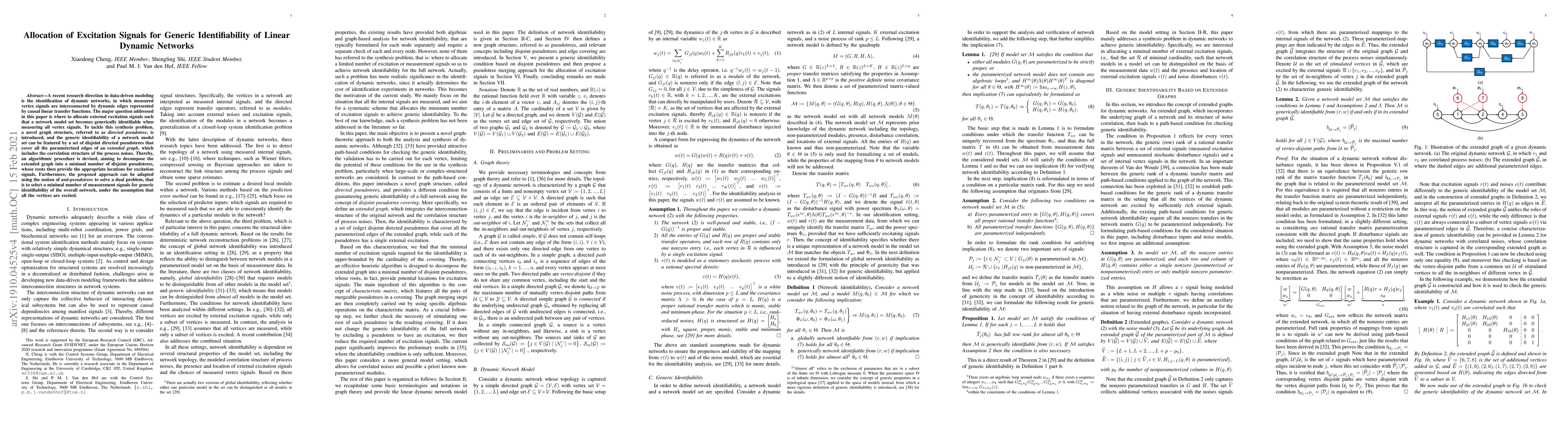 Researchers developed a method to allocate excitation signals in linear dynamic networks for generic identifiability, using a novel graph structure called directed pseudotrees. This approach enables the decomposition of complex networks into minimal disjoint pseudotrees that cover all parameterized edges, providing a solution for identifying causal relationships.