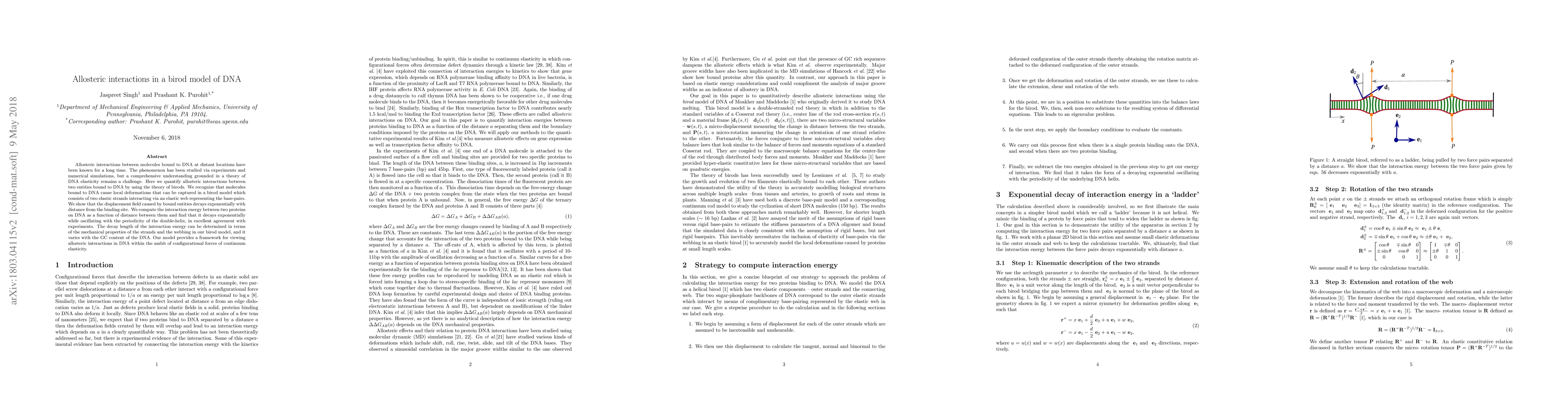 This paper develops a birod model to quantify allosteric interactions between distant molecules bound to DNA, showing that the interaction energy decays exponentially with distance and oscillates with the double-helix periodicity, providing a theoretical framework based on DNA elasticity.