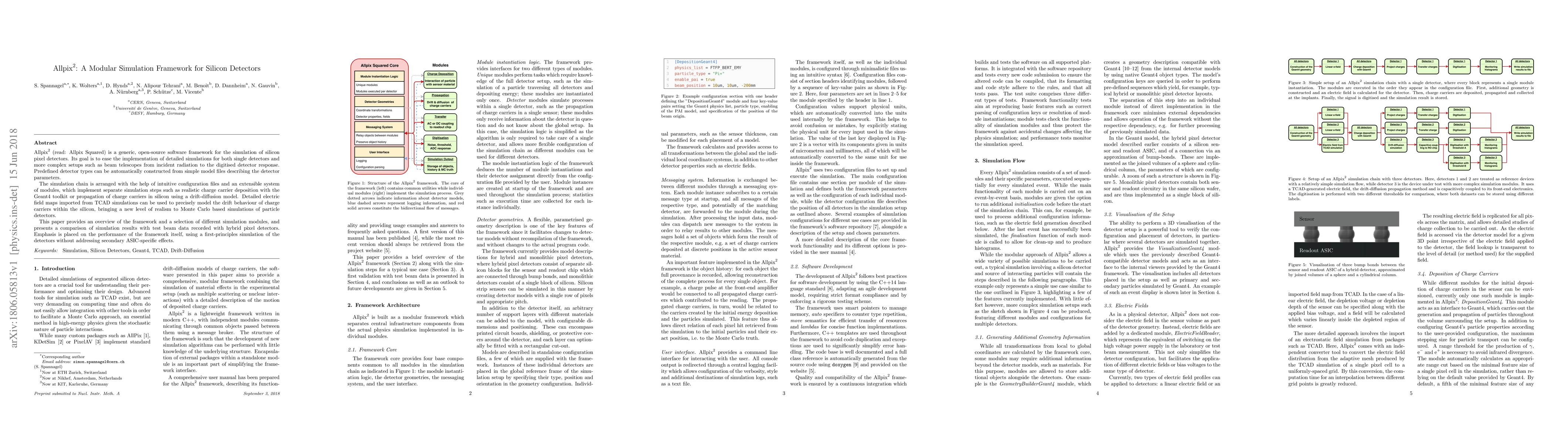 Allpix$^2$ is an open-source software framework designed for detailed simulations of silicon pixel detectors, featuring modular components for realistic charge carrier modeling and precise electric field mapping. The framework facilitates comparisons between simulation results and real test beam data, focusing on detector performance without considering ASIC-specific effects.