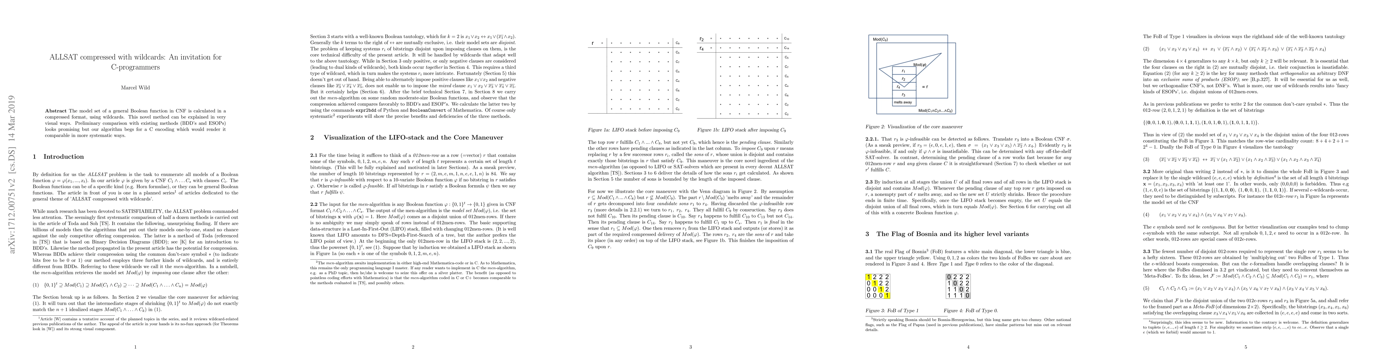 This paper introduces a new compressed format for representing Boolean functions in CNF using wildcards, offering a visual explanation. Initial comparisons suggest its potential advantages over BDDs and ESOP, but the authors call for a C implementation to enable more systematic evaluations.