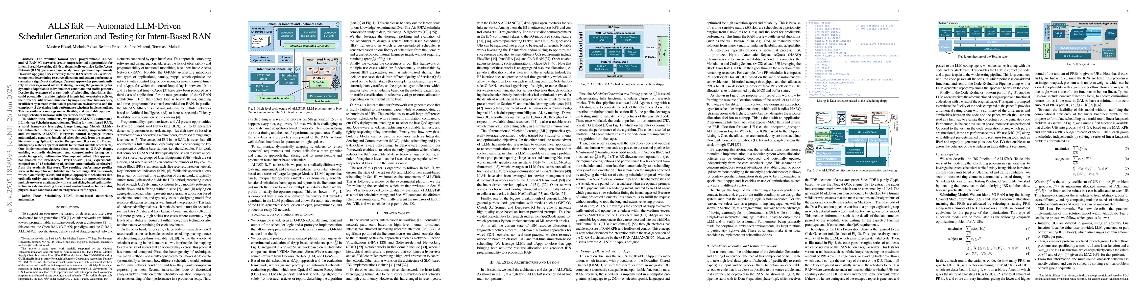 The research proposes ALLSTaR, a framework using LLMs for automated scheduler design, implementation, and evaluation. It interprets natural language intents, generates scheduler code from literature using OCR and LLMs, and matches operator intents to suitable schedulers, deploying them as O-RAN dApps for testing.