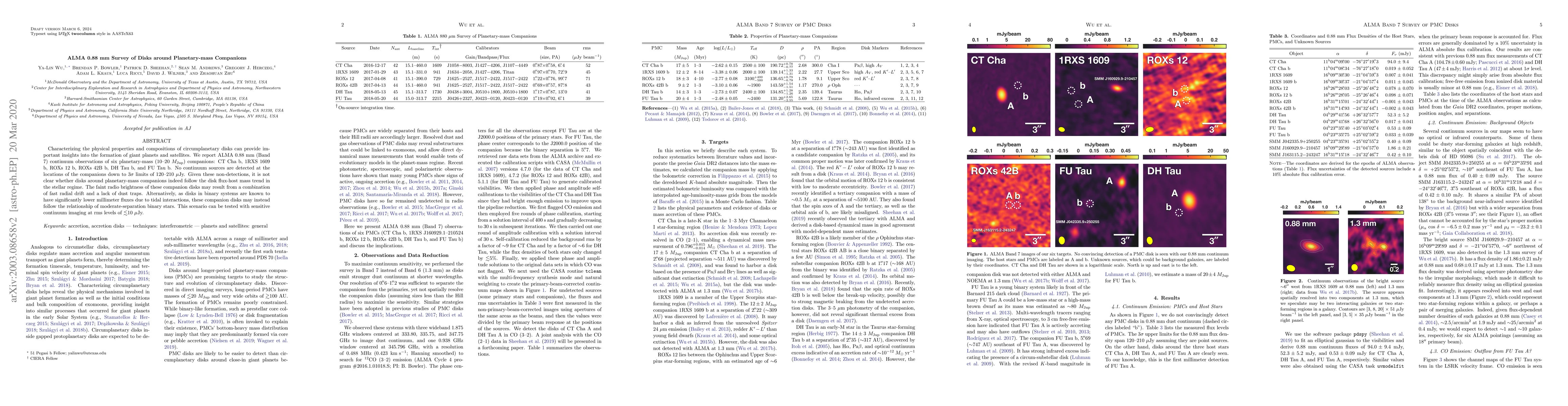 The ALMA 0.88 mm survey of six planetary-mass companions found no evidence of circumplanetary disks, suggesting either rapid dust radial drift or tidal interactions may affect disk formation. Further sensitive imaging is needed to clarify the relationship between these disks and their host masses.
