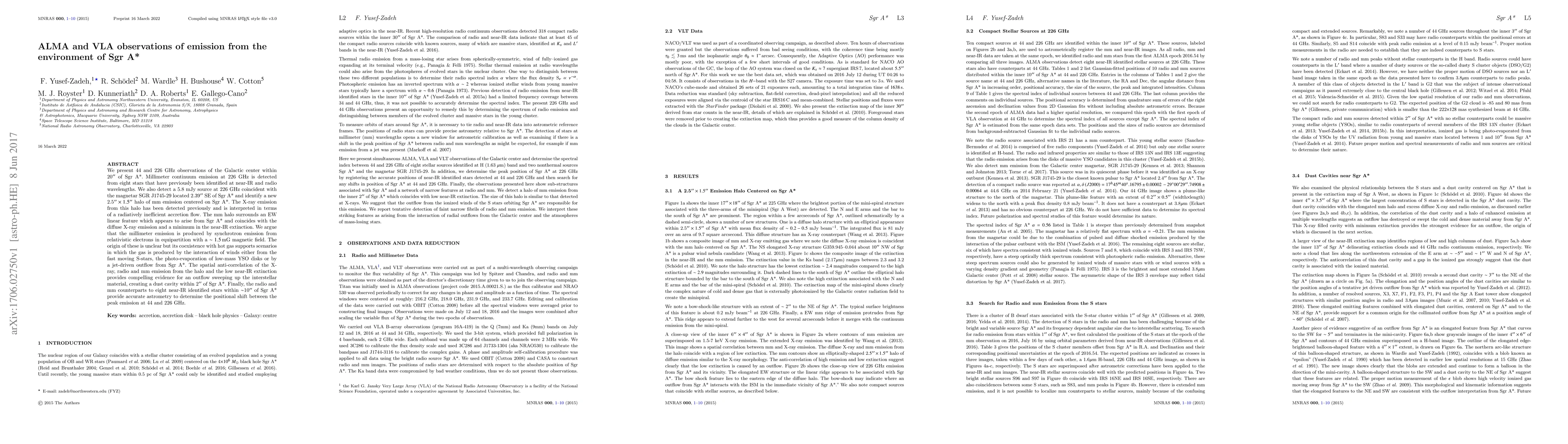 This paper uses ALMA and VLA observations to detect millimeter continuum emission near Sgr A* and identifies synchrotron emission from relativistic electrons, suggesting an outflow from Sgr A* that sweeps up interstellar material, creating a dust cavity. The study also finds positional shifts between radio and mm emissions from nearby stars.