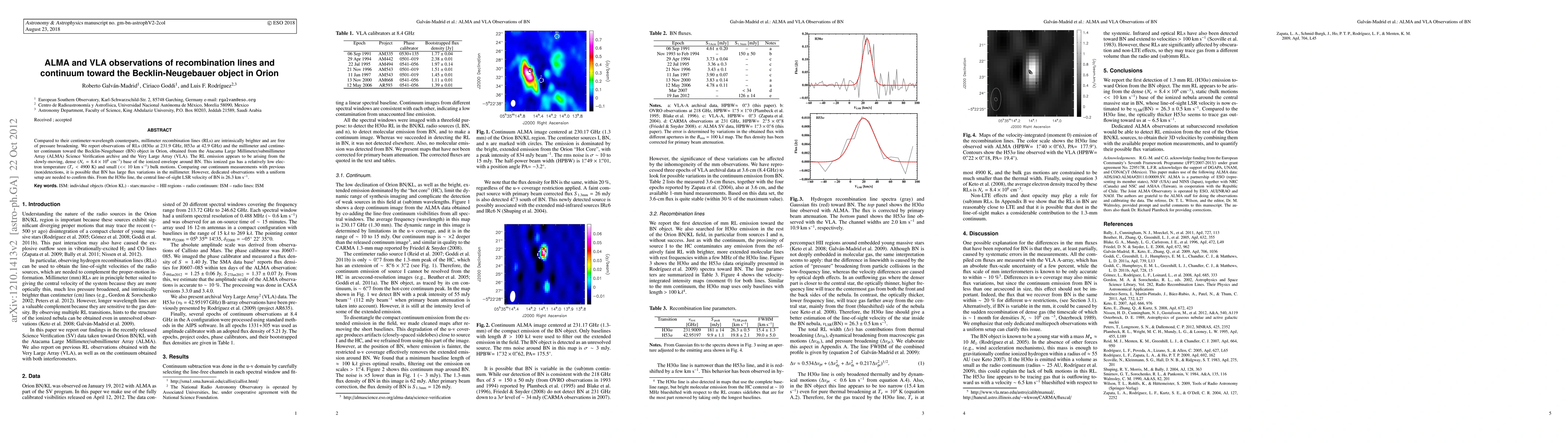 Compared to their centimeter-wavelength counterparts, millimeter recombination lines (RLs) are intrinsically brighter and are free of pressure broadening. We report observations of RLs (H30alpha at 231.9 GHz, H53alpha at 42.9 GHz) and the millimeter and centimeter continuum toward the Becklin-Neugebauer (BN) object in Orion, obtained from the Atacama Large Millimeter/submillimeter Array (ALMA) Science Verification archive and the Very Large Array (VLA). The RL emission appears to be arising from the slowly-moving, dense (Ne=8.4x10^6 cm^-3) base of the ionized envelope around BN. This ionized gas has a relatively low electron temperature (Te<4900 K) and small (<<10 km s^-1) bulk motions. Comparing our continuum measurements with previous (non)detections, it is possible that BN has large flux variations in the millimeter. However, dedicated observations with a uniform setup are needed to confirm this. From the H30alpha line, the central line-of-sight LSR velocity of BN is 26.3 km s^-1.