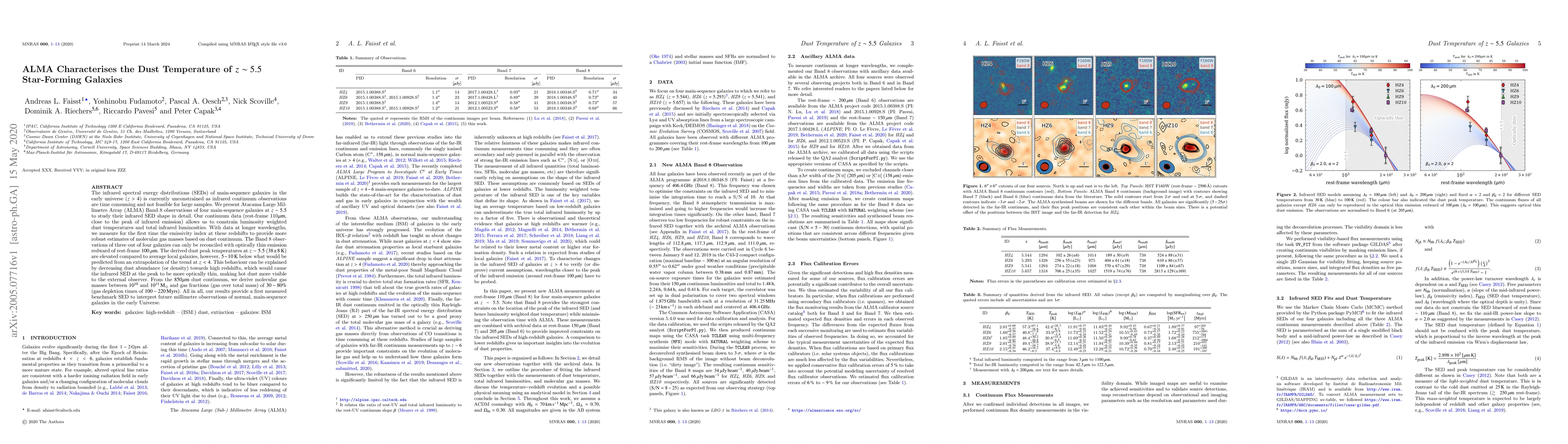 Researchers used ALMA to study infrared emission in four galaxies at z ~ 5.5, finding elevated dust peak temperatures that suggest decreasing dust abundance towards high redshifts.
