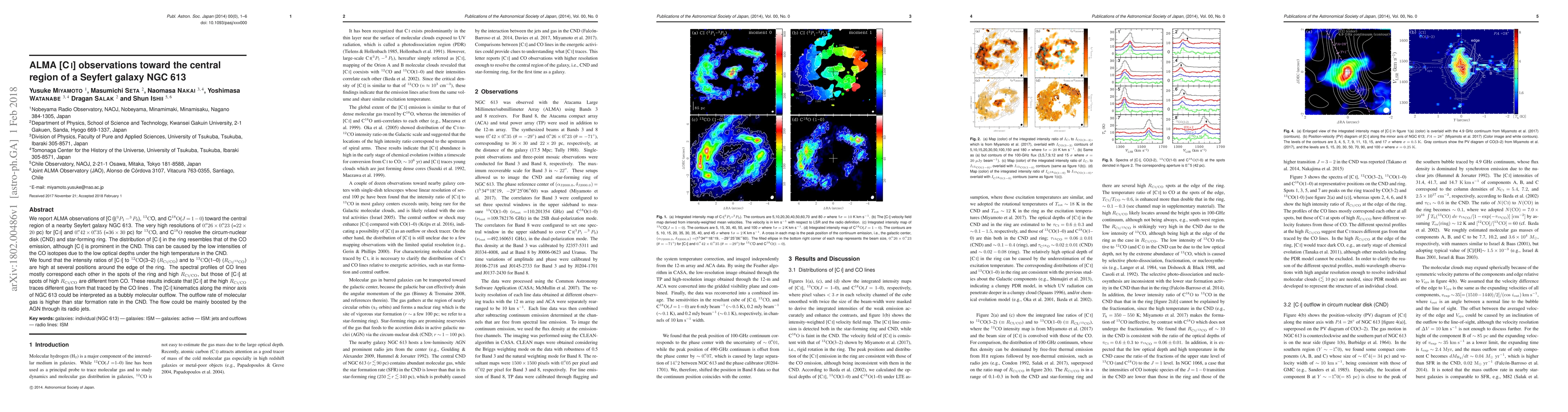 We report ALMA observations of [CI]($^3P_1-^3P_0$), C$^{13}$O, and CO$^{18}$ ($J=1-0$) toward the central region of a nearby Seyfert galaxy NGC 613. The very high resolutions of $0.26"\times0.23"(=22\times20$ pc) for [CI] and $0.42"\times0.35"(=36\times30$ pc) for C$^{13}$O, and CO$^{18}$ resolve the circum-nuclear disk (CND) and star-forming ring. The distribution of [CI] in the ring resembles that of the CO emission, although [CI] is prominent in the CND. This can be caused by the low intensities of the CO isotopes due to the low optical depths under the high temperature in the CND. We found that the intensity ratios of [CI] to C$^{12}$O(3-2) ($R_{\rm CI/CO}$) and to C$^{13}$O(1-0) ($R_{\rm CI/C^{13}O}$) are high at several positions around the edge of the ring. The spectral profiles of CO lines mostly correspond each other in the spots of the ring and high $R_{\rm CI/CO}$, but those of [CI] at spots of high $R_{\rm CI/CO}$ are different from CO. These results indicate that [CI] at the high $R_{\rm CI/CO}$ traces different gas from that traced by the CO lines. The [CI] kinematics along the minor axis of NGC 613 could be interpreted as a bubbly molecular outflow. The outflow rate of molecular gas is higher than star formation rate in the CND. The flow could be mainly boosted by the AGN through its radio jets.