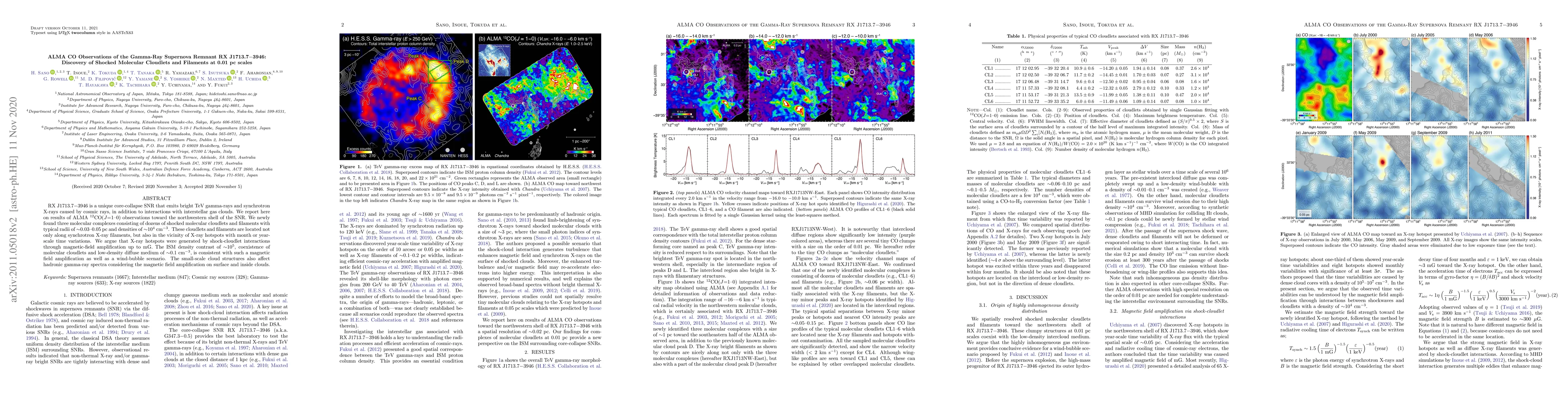 RX J1713.7-3946 is a unique core-collapse SNR that emits bright TeV gamma-rays and synchrotron X-rays caused by cosmic rays, in addition to interactions with interstellar gas clouds. We report here on results of ALMA $^{12}$CO($J$ = 1-0) observations toward the northwestern shell of the SNR. We newly found three molecular complexes consisting of dozens of shocked molecular cloudlets and filaments with typical radii of $\sim$0.03-0.05 pc and densities of $\sim$$10^4$ cm$^{-3}$. These cloudlets and filaments are located not only along synchrotron X-ray filaments, but also in the vicinity of X-ray hotspots with month or year-scale time variations. We argue that X-ray hotspots were generated by shock-cloudlet interactions through magnetic-field amplification up to mG. The ISM density contrast of $\sim$$10^5$, coexistence of molecular cloudlets and low-density diffuse medium of $\sim$0.1 cm$^{-3}$, is consistent with such a magnetic field amplification as well as a wind-bubble scenario. The small-scale cloud structures also affect hadronic gamma-ray spectra considering the magnetic field amplification on surface and inside clouds.