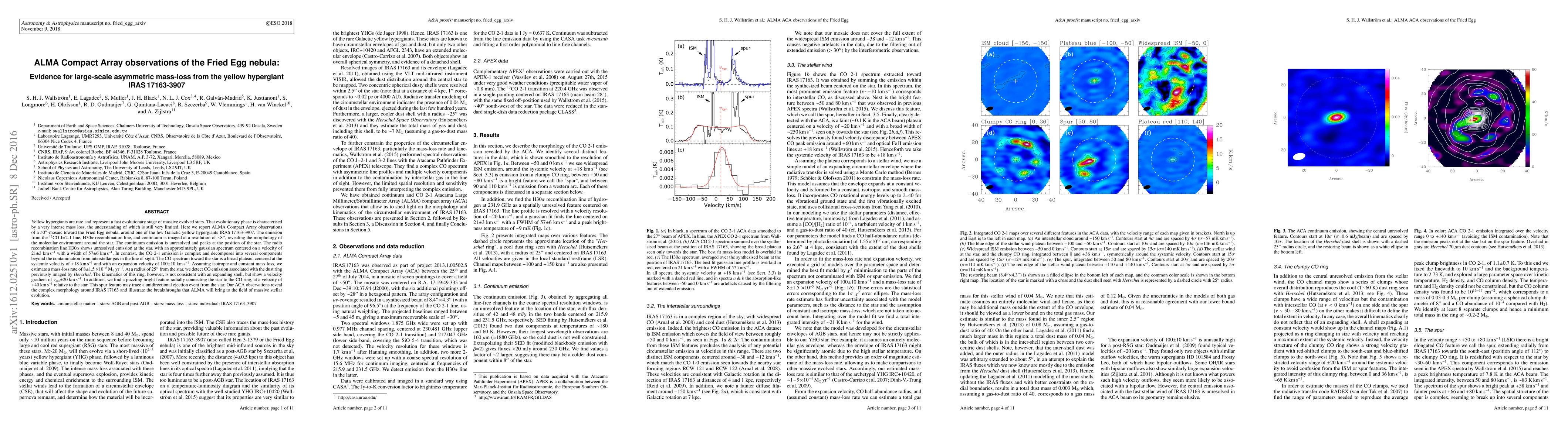 Yellow hypergiants are rare and represent a fast evolutionary stage of massive evolved stars. That evolutionary phase is characterised by a very intense mass loss, the understanding of which is still very limited. Here we report ALMA Compact Array observations of a 50$"$-mosaic toward the Fried Egg nebula, around one of the few Galactic yellow hypergiants IRAS 17163-3907. The emission from the $^{12}$CO J=2-1 line, H30$\alpha$ recombination line, and continuum is imaged at a resolution of $\sim$8$"$, revealing the morphology of the molecular environment around the star. The continuum emission is unresolved and peaks at the position of the star. The radio recombination line H30$\alpha$ shows unresolved emission at the star, with an approximately gaussian spectrum centered on a velocity of 21$\pm$3~km/s with a width of 57$\pm$6~km/s. In contrast, the CO 2-1 emission is complex and decomposes into several components beyond the contamination from interstellar gas in the line of sight. The CO spectrum toward the star is a broad plateau, centered at the systemic velocity of +18 km/s and with an expansion velocity of 100$\pm$10 km/s. Assuming isotropic and constant mass-loss, we estimate a mass-loss rate of 8$\pm$1.5 $\times10^{-5}$~M$_\odot$ yr$^{-1}$. At a radius of 25$"$ from the star, we detect CO emission associated with the dust ring previously imaged by {\it Herschel}. The kinematics of this ring, however, is not consistent with an expanding shell, but show a velocity gradient of $v_{sys} \pm$20 km/s. In addition, we find a puzzling bright feature radially connecting the star to the CO ring, at a velocity of +40 km/s relative to the star. This spur feature may trace a unidirectional ejection event from the star. Our ACA observations reveal the complex morphology around IRAS 17163 and illustrate the breakthroughs that ALMA will bring to the field of massive stellar evolution.