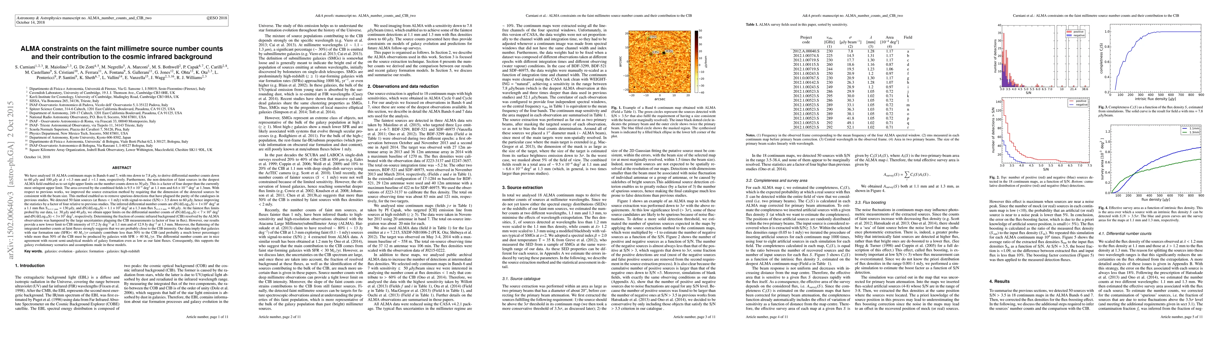 This study uses ALMA observations to derive the faint millimetre source number counts, finding improved statistics and suggesting galaxies with high star formation rates (SFR > 40 M☉/yr) contribute significantly to the cosmic infrared background (CIB). The results provide new lower limits for CIB intensity and support galaxy evolutionary models.