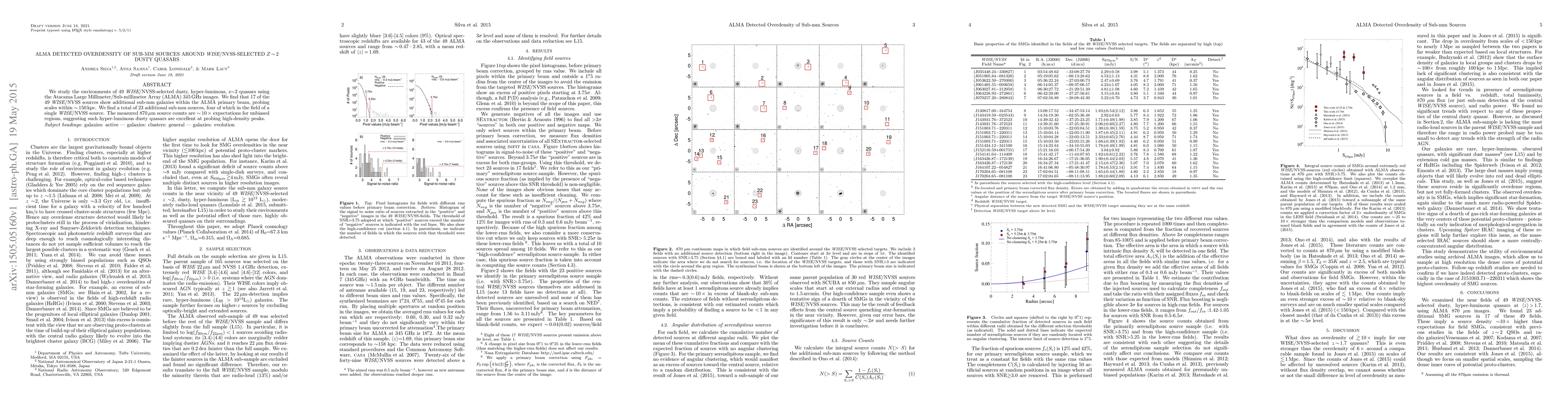 ALMA detected an overdensity of sub-mm sources around 49 WISE/NVSS-selected z~2 dusty quasars, revealing 23 additional sub-mm galaxies within ~150 kpc. This suggests that hyper-luminous dusty quasars are effective at identifying high-density regions.