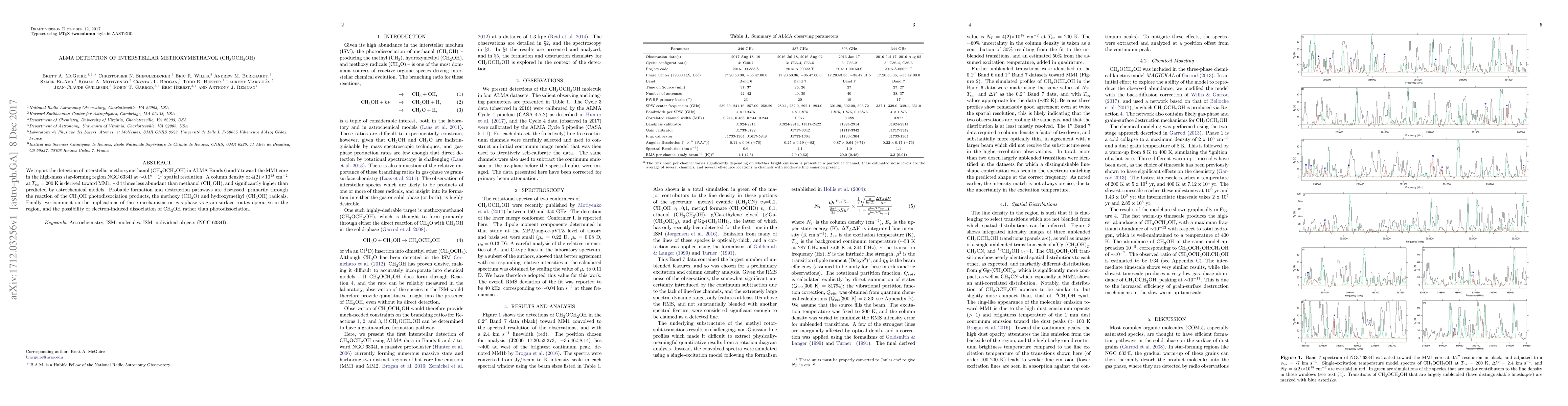 This paper reports the first detection of interstellar methoxymethanol (CH$_3$OCH$_2$OH) using ALMA in NGC 6334I, finding it to be ~34 times less abundant than methanol but significantly more than predicted by models. The study discusses potential formation pathways and implications for gas-phase vs. grain-surface chemistry.