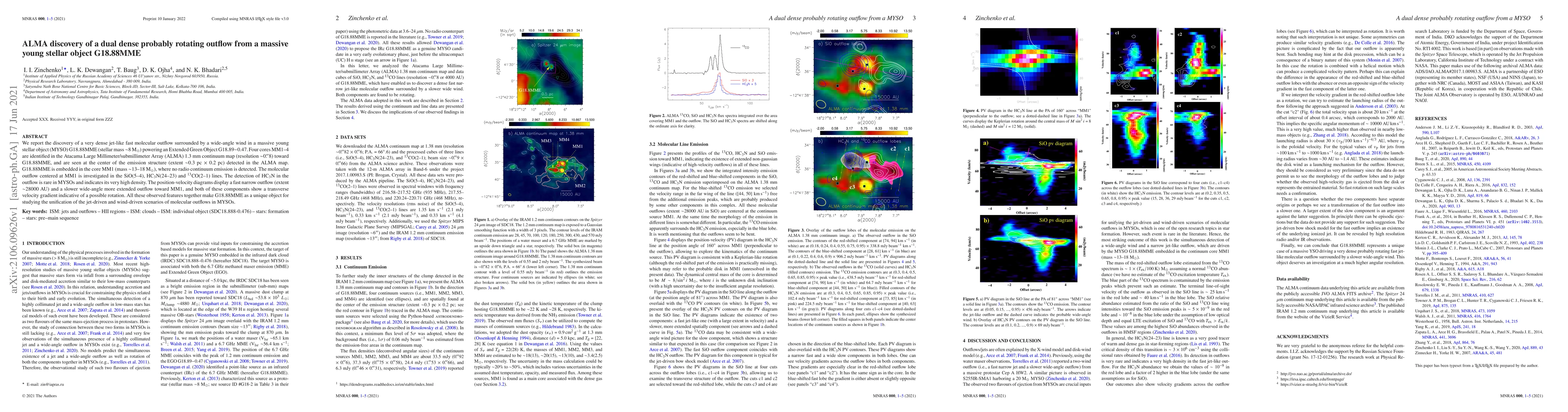 The paper reports the discovery of a dense, possibly rotating molecular outflow from a massive young stellar object (MYSO) G18.88MME using ALMA observations. The outflow, driven by the MYSO with ~8 M$_{odot}$ mass, displays a fast jet-like component and a slower wide-angle wind. The detection of HC$_{3}$N in the outflow suggests high density, while position-velocity diagrams indicate rotation. This makes G18.88MME a unique case for studying outflow formation in MYSOs.
