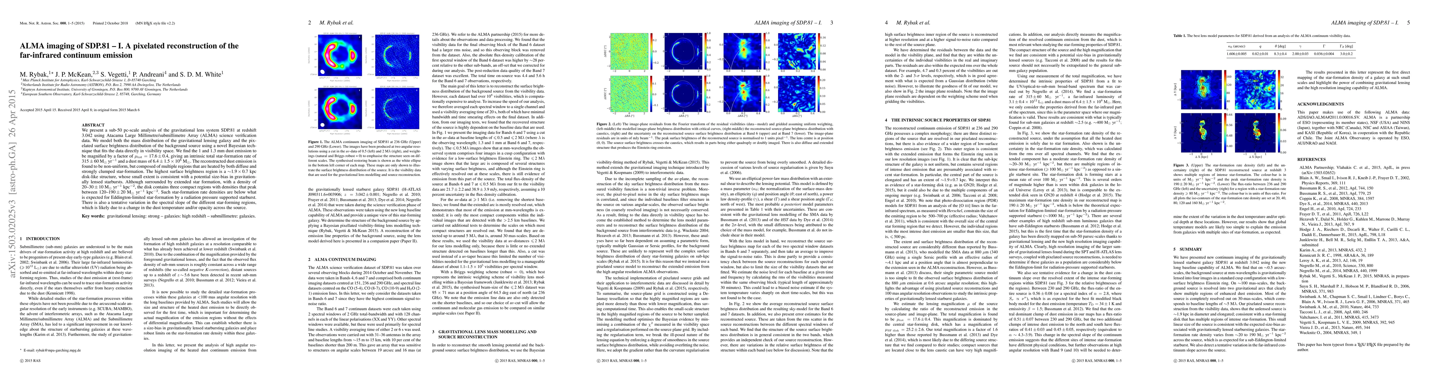 We present a sub-50 pc-scale analysis of the gravitational lens system SDP.81 at redshift 3.042 using Atacama Large Millimetre/submillimetre Array (ALMA) science verification data. We model both the mass distribution of the gravitational lensing galaxy and the pixelated surface brightness distribution of the background source using a novel Bayesian technique that fits the data directly in visibility space. We find the 1 and 1.3 mm dust emission to be magnified by a factor of u_tot = 17.6+/-0.4, giving an intrinsic total star-formation rate of 315+/-60 M_sol/yr and a dust mass of 6.4+/-1.5*10^8 M_sol. The reconstructed dust emission is found to be non-uniform, but composed of multiple regions that are heated by both diffuse and strongly clumped star-formation. The highest surface brightness region is a ~1.9*0.7 kpc disk-like structure, whose small extent is consistent with a potential size-bias in gravitationally lensed starbursts. Although surrounded by extended star formation, with a density of 20-30+/-10 M_sol/yr/kpc^2, the disk contains three compact regions with densities that peak between 120-190+/-20 M_sol/yr/kpc^2. Such star-formation rate densities are below what is expected for Eddington-limited star-formation by a radiation pressure supported starburst. There is also a tentative variation in the spectral slope of the different star-forming regions, which is likely due to a change in the dust temperature and/or opacity across the source.