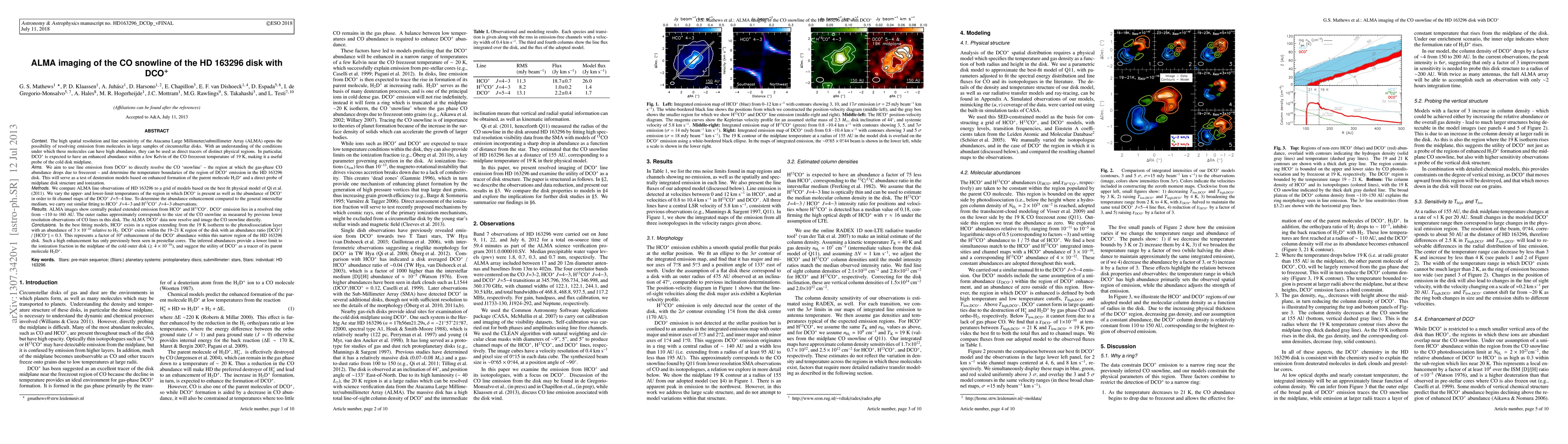 The high spatial and line sensitivity of ALMA opens the possibility of resolving emission from molecules in circumstellar disks. With an understanding of physical conditions under which molecules have high abundance, they can be used as direct tracers of distinct physical regions. In particular, DCO+ is expected to have an enhanced abundance within a few Kelvin of the CO freezeout temperature of 19 K, making it a useful probe of the cold disk midplane. We compare ALMA line observations of HD 163296 to a grid of models. We vary the upper- and lower-limit temperatures of the region in which DCO+ is present as well as the abundance of DCO+ in order to fit channel maps of the DCO+ J=5-4 line. To determine the abundance enhancement compared to the general interstellar medium, we carry out similar fitting to HCO+ J=4-3 and H13CO+ J=4-3 observations. ALMA images show centrally peaked extended emission from HCO+ and H13CO+. DCO+ emission lies in a resolved ring from ~110 to 160 AU. The outer radius approximately corresponds to the size of the CO snowline as measured by previous lower resolution observations of CO lines in this disk. The ALMA DCO+ data now resolve and image the CO snowline directly. In the best fitting models, HCO+ exists in a region extending from the 19 K isotherm to the photodissociation layer with an abundance of 3x10^-10 relative to H2. DCO+ exists within the 19-21 K region of the disk with an abundance ratio [DCO+] / [HCO+] = 0.3. This represents a factor of 10^4 enhancement of the DCO+ abundance within this narrow region of the HD 163296 disk. Such a high enhancement has only previously been seen in prestellar cores. The inferred abundances provide a lower limit to the ionization fraction in the midplane of the cold outer disk (approximately greater than 4x10^-10), and suggest the utility of DCO+ as a tracer of its parent molecule H2D+. Abridged