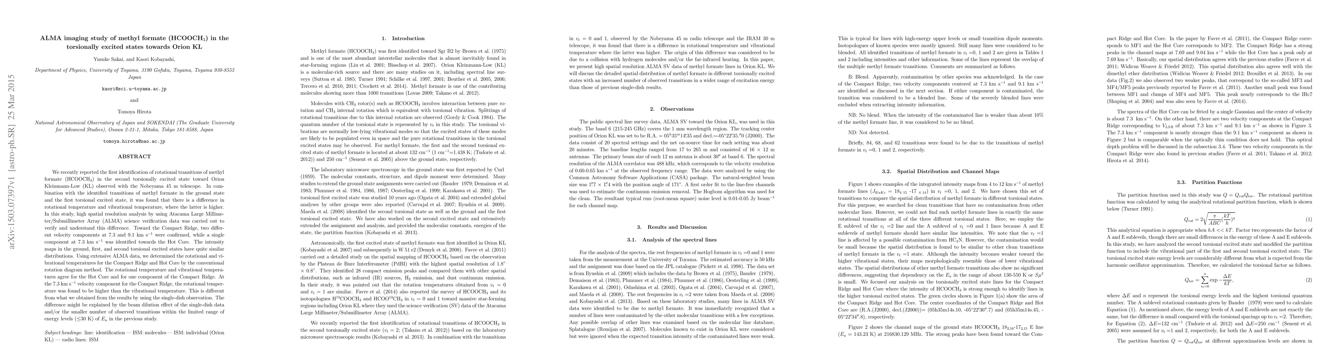 Researchers used ALMA to study methyl formate in Orion KL, finding a difference between rotational and vibrational temperatures in two velocity components, with one being higher than the other.