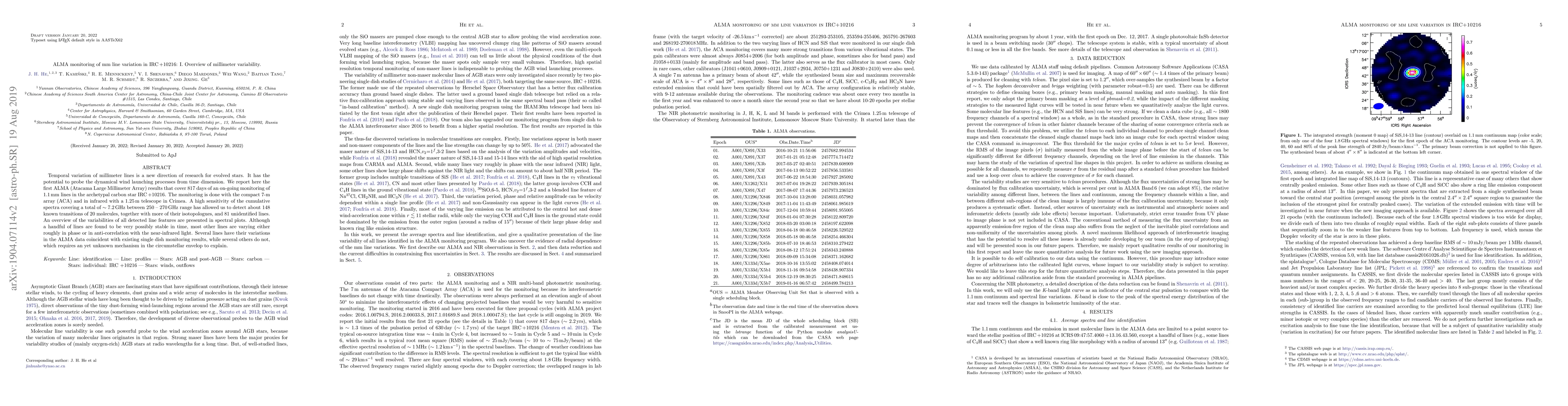 Temporal variation of millimeter lines is a new direction of research for evolved stars. It has the potential to probe the dynamical wind launching processes from time dimension. We report here the first ALMA (Atacama Large Millimeter Array) results that cover 817 days of an on-going monitoring of 1.1 mm lines in the archetypal carbon star IRC +10216. The monitoring is done with the compact 7-m array (ACA) and in infrared with a 1.25 m telescope in Crimea. A high sensitivity of the cumulative spectra covering a total of ~7.2 GHz between 250 - 270 GHz range has allowed us to detect about 148 known transitions of 20 molecules, together with more of their isotopologues, and 81 unidentified lines. An overview of the variabilities of all detected line features are presented in spectral plots. Although a handful of lines are found to be very possibly stable in time, most other lines are varying either roughly in phase or in anti-correlation with the near-infrared light. Several lines have their variations in the ALMA data coincident with existing single dish monitoring results, while several others do not, which requires an yet unknown mechanism in the circumstellar envelop to explain.