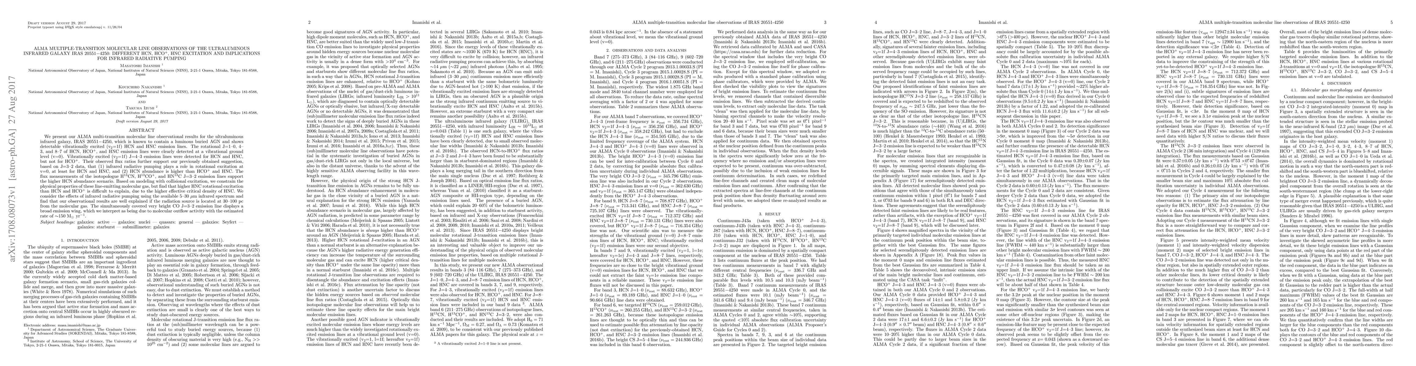 ALMA observations of the ultraluminous infrared galaxy IRAS 20551-4250 reveal distinct excitation patterns for HCN, HCO+, and HNC, indicating infrared radiative pumping's role in rotational excitation, especially for HCN and HNC, and suggesting higher HCN abundance. The study also detects molecular outflow activity.