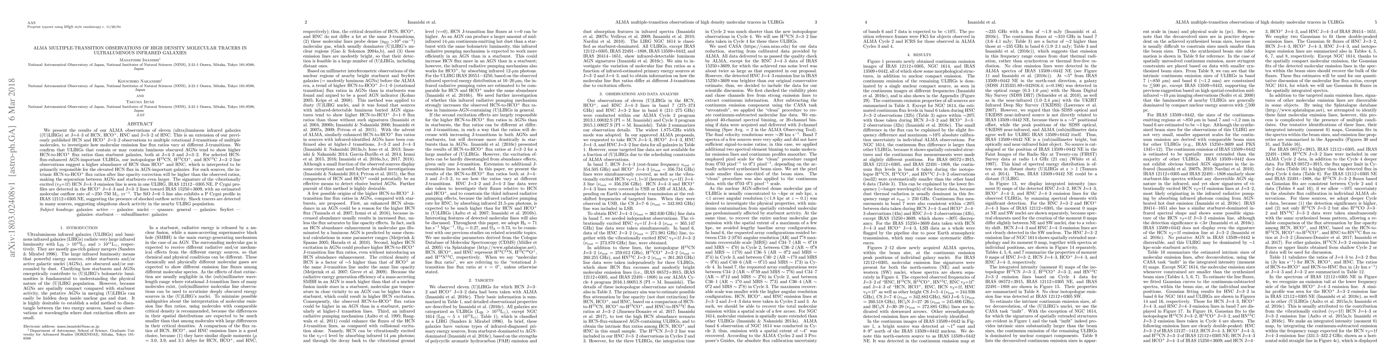 ALMA observations of eleven (ultra)luminous infrared galaxies reveal higher HCN-to-HCO+ flux ratios in those potentially containing luminous obscured AGNs compared to starburst galaxies. The study also detects molecular outflows and shock activity in several ULIRGs, indicating widespread energetic processes.