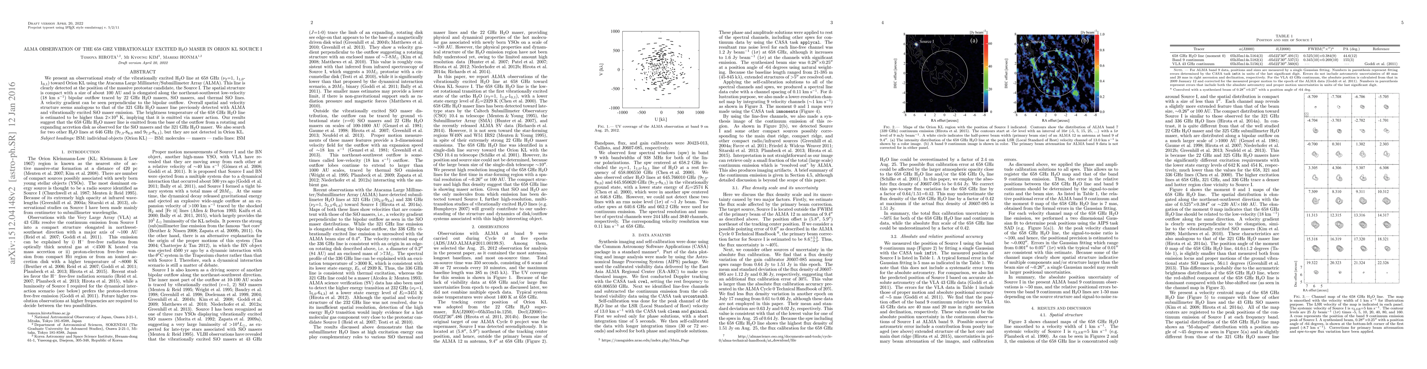 ALMA observations reveal a compact, elongated 658 GHz vibrationally excited H$_{2}$O maser line in Orion KL's Source I, associated with a massive protostar and a bipolar outflow. The maser's brightness temperature suggests emission via maser action from the outflow's base.