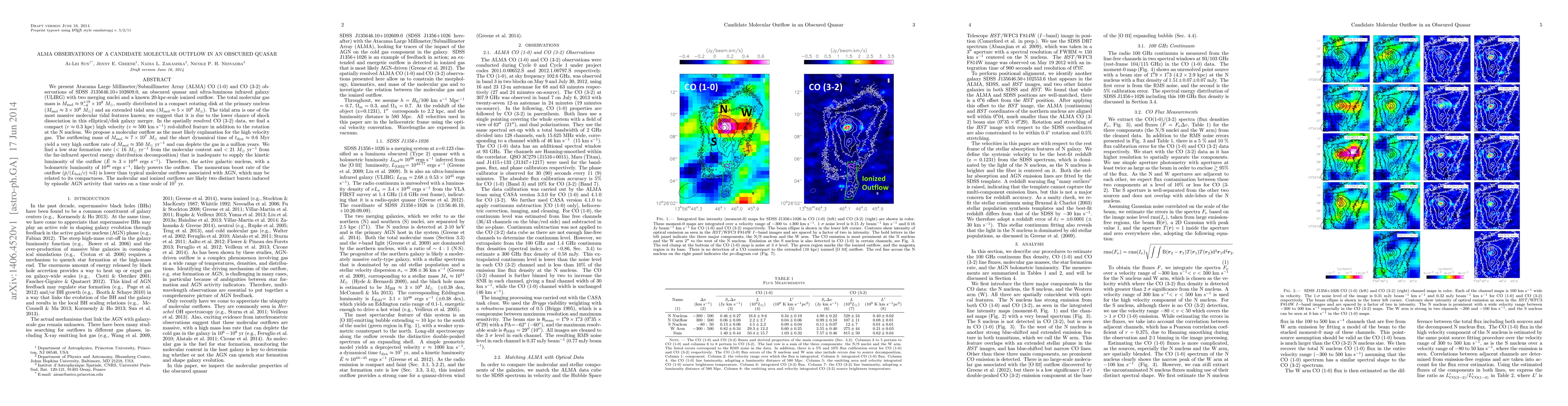 ALMA observations reveal a candidate molecular outflow in the obscured quasar SDSS J135646.10+102609.0, suggesting the active galactic nucleus powers it, while the molecular gas is primarily concentrated in a rotating disk and an extended tidal arm. This outflow is highly efficient, potentially depleting the gas reservoir in a million years.
