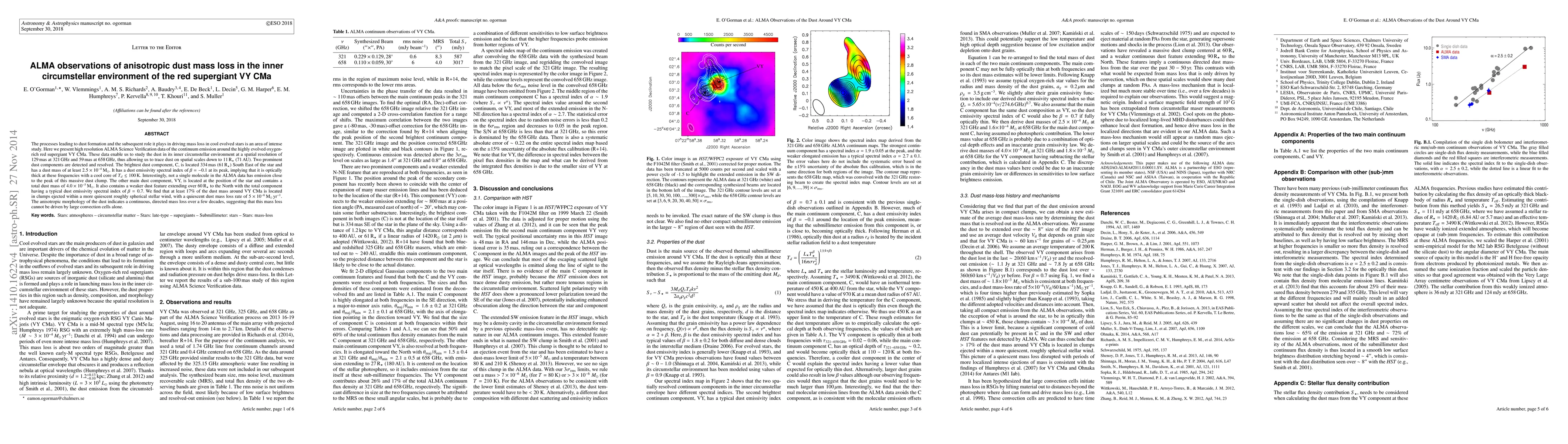 Astronomers used ALMA to study dust in the inner environment of VY Canis Majoris, a red supergiant star, detecting two prominent dust components that suggest anisotropic mass loss driven by directed stellar winds.