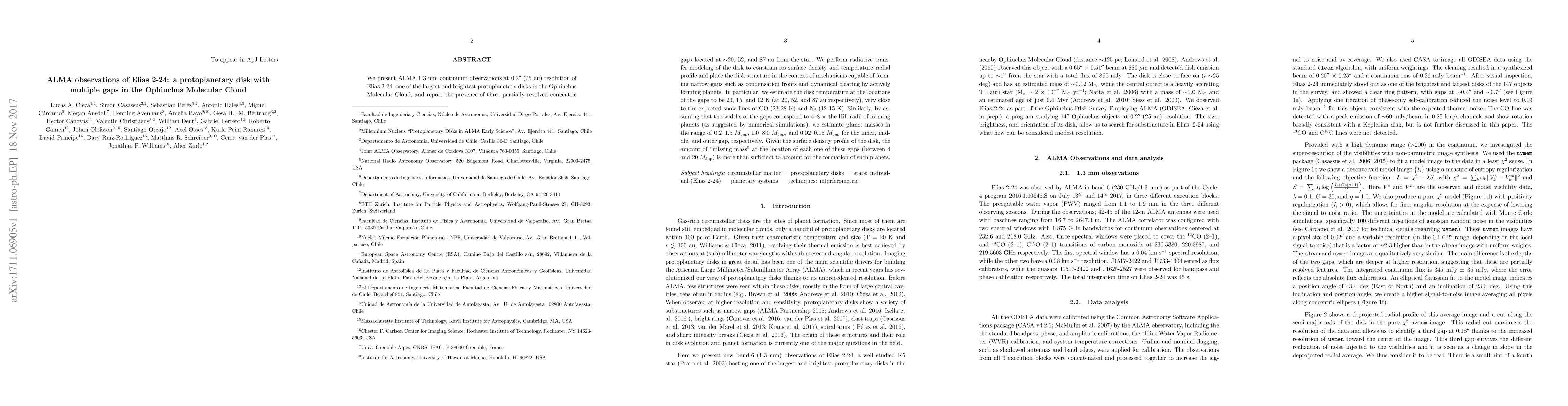 Researchers used ALMA to observe a protoplanetary disk with multiple gaps in the Ophiuchus Molecular Cloud, estimating temperatures near snow lines and planet masses ranging from 0.02-1.5 M_Jup.