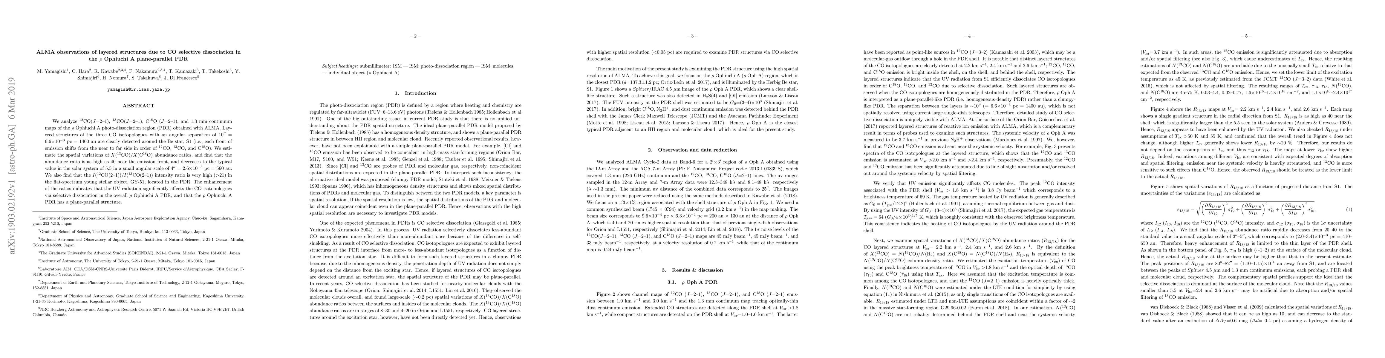 ALMA observations reveal layered structures of CO isotopologues in the $\rho$ Ophiuchi A PDR, indicating UV radiation-driven selective dissociation. The spatial variations in $X$($^{13}$CO)/$X$(C$^{18}$O) ratios suggest significant UV influence, with high ratios near emission fronts decreasing to solar system values over small angular scales.