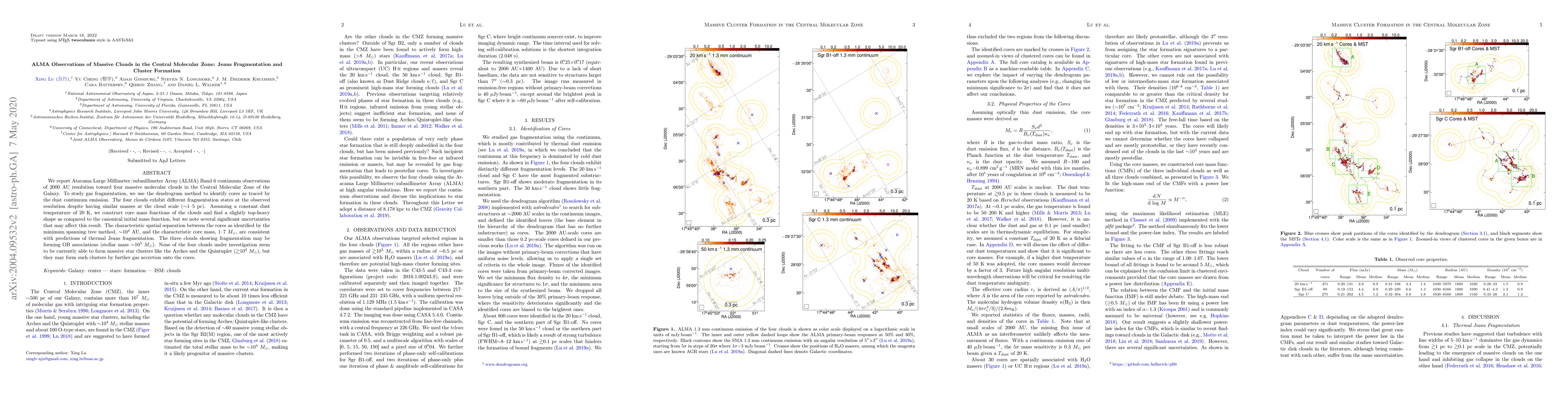 ALMA observations of four massive molecular clouds in the Central Molecular Zone reveal varied fragmentation states despite similar masses. The clouds show top-heavy core mass functions and spatial separations consistent with thermal Jeans fragmentation, suggesting potential OB association formation.